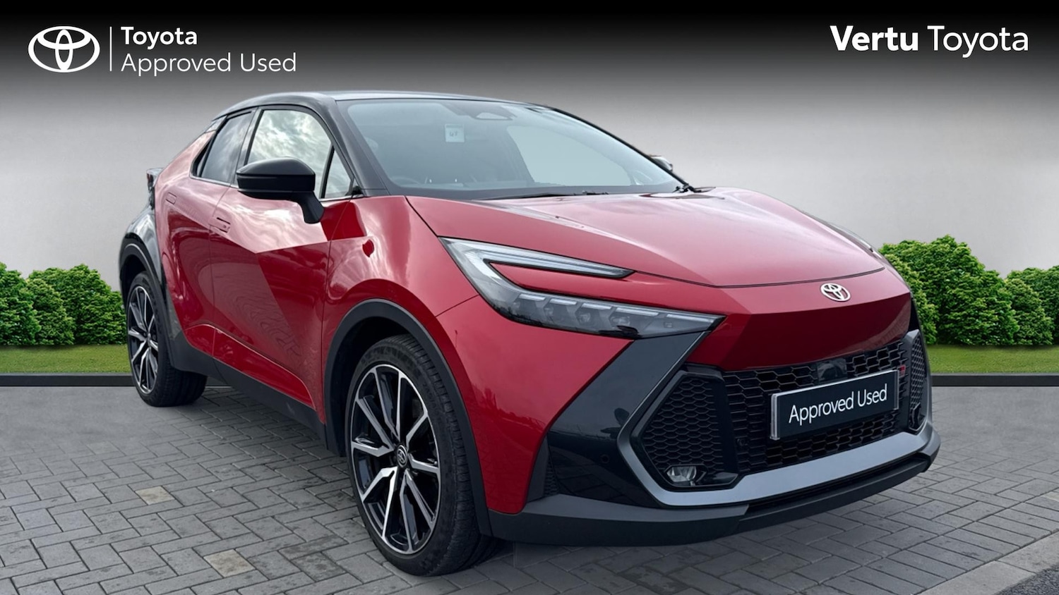 1 Previous Owner, 0, Franchise Approved, We are delighted to introduce this CHR GR Sport 2.0 Plugin Hybrid in striking Red with Black contrast roof, first registered in September 2024. Its a fantastic example of Toyotas performanceinspired compact SUV, combining bold styling with impressive hybrid efficiency.The GR Sport model really stands out. Youll notice the 19inch black and machinedface alloy wheels, dedicated front spoiler, dark chrome grille and blackedout badging, all giving it a sharper, more aggressive road presence. Inside, the sports seats with suedeeffect trim continue that dynamic theme, while the 12.3inch infotainment system keeps everything crisp, modern and intuitive.This car benefits from the stiffer TNGA platform and GR Sportspecific suspension tuning, delivering a noticeably more engaging and controlled drive. It feels planted, responsive and confidenceinspiring, yet still retains the comfort youd expect from a CHR.Specification is equally strong, including a headup display, JBL 9speaker premium audio system, Blind Spot Monitor, Rear Cross Traffic Alert with Auto Brake and HillStart Assist. Toyota Safety Sense is the latest generation, featuring Proactive Driving Assist and Safe Exit Assist for enhanced allround protection.If youre looking for sporty, assertive styling with the efficiency of a plugin hybrid, this GR Sport is a superb choice. We highly recommend arranging a test drive to fully appreciate what it offers..Alloy Wheels, DAB Radio, Bluetooth, Manufacturer Approved, AppleAndroid Play, Rear Camera, Lane Departure, Lane Keeping Assist, Pre Crash Prevention& Rain Sensors, Floor mats border/stitching, Mat Fitment, Fast charger 32A Mennekes cable, 3 Pin Charge Cable (6m) Mode 2, 32A Mennekes Charge Cable, Mode 3, Privacy glass, Front and rear power windows, Variable front intermittent wipers, Rear window wiper, Auto up and down function on all power windows, Antijam protection on power windows, Rear window defogger, UVfilter on driver and passenger windows, UVfilter on rear windows, Noise reduction layer on front windows, Noise reduction layer on windscreen, Automatic rain sensing wipers, ABS+EBD+Brake assist, Electronic parking brake, Hill start assist control (HAC), Front to front oncoming car and motorbike daytime detection, Toyota safety sense with over the air updates, Pre collision system with pedestrian, cyclist and motorbike day detection, Quote Ref: 24089103