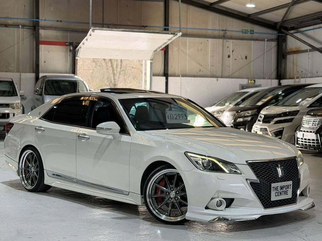 Bingley1 Previous Owner, FRESH IMPORTGRADE 3.5FULL TRD BODY KITNEW SHAPE Handpicked directly from Japan, this highspec Crown is a nonaccident, rustfree example, officially graded 3.5 at Japanese auction with certified mileage. The vehicle benefits from an extensive factory and upgraded specification, including: Full TRD Body Kit Front Chrome Crown Logo Large Front Grill With Chrome Surround Xenon headlights DRLs Chrome accents Wind Deflectors Privacy Glass 20" Work Chrome Deep Dish Split Rim alloys Brembo Calliper Covers TRD Side Skirts TRD Frontlip Pearl White paint TOMs Quad Exhaust Large Rear Diffuser Ducktail Spoiler Fog Lights Electric Seats Drivers memory seat Full factory Leather interior Brown Stitching Keyless entry Keyless go Factory athlete branded mats Electric tilt and slide sunroof Electric steering column Multifunction steering wheel Cruise control Power folding mirrors Auto high beam assist Headlight washer button Digital dual zone climate control Bluetooth/AM/FM/CD Electric Rear Blind Vehicle Drive modes Auto windows all round Dynamic mirror indicators Buy with confidence from The Import Centre. All vehicles are supplied with: Authenticated Japanese auction sheet BIMTAcertified mileage 6month parts & labour warranty All vehicles are available to view in our welllit, indoor showroom. *****NATIONWIDE DELIVERY AVAILABLE***** Vehicle registered: 01/05/2013.