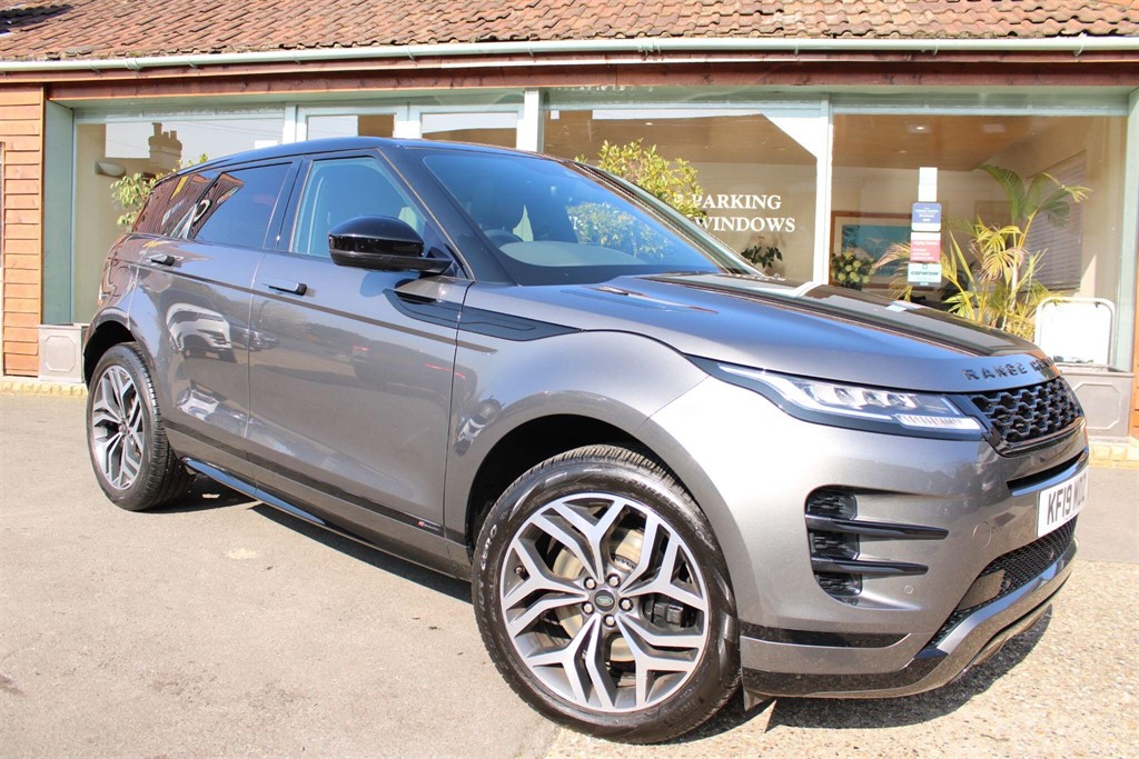 2 Previous Owners, REALLY GREAT SPEC...DIGITAL DASH, BLACK PACK, BLACK CONTRAST ROOF, HEATED STEERING WHEEL, PRIVACY GLASS, ELECTRIC TAILGATE, PANO ROOF, 20" ALLOYS, REVERSE CAMERA, HEATED SEATS AND SO MUCH MORE... This 2019 Range Rover Evoque P250 RDynamic S boasts a full service history, offering peace of mind alongside its impressive capabilities. This stylish SUV features a responsive 2.0 litre petrol engine paired with a Four Wheel Drive system, ensuring confident handling in various conditions. Its Euro 6 emission class reflects modern environmental standards. Experience the dynamic performance of this Evoque, accelerating from 0 to 60mph in just 7.0 seconds, a testament to its P250 designation. The RDynamic S trim enhances its appeal with striking LED headlights and the convenience of a rear view camera for easier parking. Inside, enjoy the comfort of Two Zone Climate Control and seamless integration with your smartphone thanks to Apple CarPlay. A 6 month warranty and a 12 month MOT are included for your assurance.. 10Way Heated Electric Front Seats,10in Touch Pro,18in Alloy Wheels 5Split Spoke Style 5074 Gloss Sparkle Silver,402040 Split Fold Rear Seat,ABS Anti Lock Braking System,ATPC All Terrain Progress Control,Airbags Driver Knee,Airbags Front Driver and Front Passenger,All Season Tyres,Analogue Dials with Central TFT Display,Android Auto,Apple CarPlay,AutoDimming Power Fold Heated Door Mirrors with Approach Lights,AutoDimming Interior Rear View Mirror,Autonomous Emergency Braking,Black Gearshift Paddles,Bluetooth Connectivity,Body Coloured Roof,Brake Pad Wear Indicator,Bright Metal Pedals,Carpet Mats,Chrome Treadplates,Climate Control Rear Vents,Cruise Control and Speed Limiter,Customer Configurable Autolock,DAB Digital Audio Broadcast,DSC Dynamic Stability Control,Driver Condition Monitor,EBA Emergency Brake Assist,EBD Electronic BrakeForce Distribution,EPAS Electronic Power Assisted Steering,ETC Electronic Traction Control,Efficient Driveline,Electric Parking Brake,Electric Windows with OneTouch OpenClose and AntiTrap,Evoque and RDynamic Badge,Flush Deployable Door Handles,Front and Rear Parking Aid,HDC Hill Descent Control,Headlining Ebony Morzine,Heated Rear Window with Timer,Hill Launch Assist,InControl Remote App,InControl Apps,Interior Lighting,Intrusion Sensor,LED Headlights,Lane Keep Assist,Locking Wheel Nuts,Low Traction Launch,Manual Headlight Levelling,Manual Tailgate,Manually Adjustable Steering Column,Navigation Pro,Overhead Lighting Console,Overhead Stowage for Sunglasses,P250 Badge,Passive Front Headrests,Passive Suspension,Perforated Leather Steering Wheel,Power Operated Child Locks,Power Socket Pack 1,Pro Services and WiFi Hotspot,Push Button Start,RDynamic Exterior Pack,RSC Roll Stability Control,Rain Sensing Windscreen Wipers and Automatic Headlights Automatic,Rear Fog Lights,Rear ISOFIX,Rear View Camera,S Badge,Seat Belt Reminder,Seats Rear Centre Head Restraint,Shadow Atlas RANGE ROVER Bonnet and Tailgate Script,Side Curtain Airbags and Thorax,Smart Settings,Sound System,Sun Visors Illuminated Vanity Mirrors,TPMS Tyre Pressure Monitoring System,Tailgate Spoiler,Terrain Response 2,Torque Vectoring,Traffic Sign Recognition and Adaptive Speed Limiter,Trim Finish Gradated Linear Dark Aluminium,Twin Front Cupholders with Cover,Twin Sliding Front Centre Armrest,TwoZone Climate Control,Tyre Repair System,Voice Control,Windscreen Heated,Windscreen Washer Jets Heated,Black Exterior Pack,Fixed Panoramic Roof Including Powered Blind,Privacy Glass,Grained Leather Ebony with EbonyEbony Interior,Powered Tailgate,Steering Wheel Heated,Black Contrast Roof