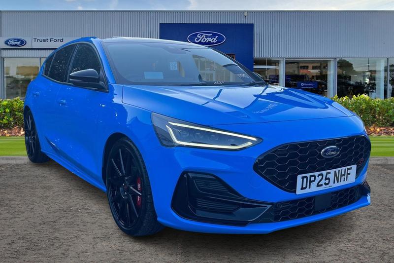 12.3 Digital instrument cluster, Adjustable speed limiter, Bluetooth system, Digital clock, Easy fuel capless refuelling system, Eco mode, Ford SYNC4 Nav with 13.2'' touchscreen, DAB, Emergency Assistance, Apple Carplay & Android Auto, B&O Premium Audio with 10 speakers, FordPass Connect, Lane keeping system lane keeping alert and lane keeping aid, PAS, Rev counter, Selectable drive mode, Service interval indicator, Track mode, Trip computer, Wireless charging pad, Auto headlamps (on/off), Auto high beam assist, Black door mirrors, Black painted roof, Black rear diffuser, Black roof spoiler, Body coloured door handles, Dynamic matrix LED headlamps including Glare free lighting, Electrically operated front and rear windows with one touch opening and closing, Electrically operated heated power fold door mirrors with puddle lamp with side indicators, Exclusive paint, Front variable intermittent wipers with electric wash, Heated rear window, LED daytime running lamp, LED rear lamps, LED third brake light, Privacy glass, Quickclear heated windscreen, Rain sensor, Rear side wing doors, Tailgate wash/wipe, Unique ST upper & lower grille with full bodystyling kit, 3 rear headrests, 3 seat bench in 2nd row, Dual zone electronic air temperature control, Height adjustable front headrests, Isofix child seat preparation, Load through ski hatch, Partial sensico upholstery with ford performance seat, Power 6way driver seat adjust, with power lumbar adjust, Power 6way