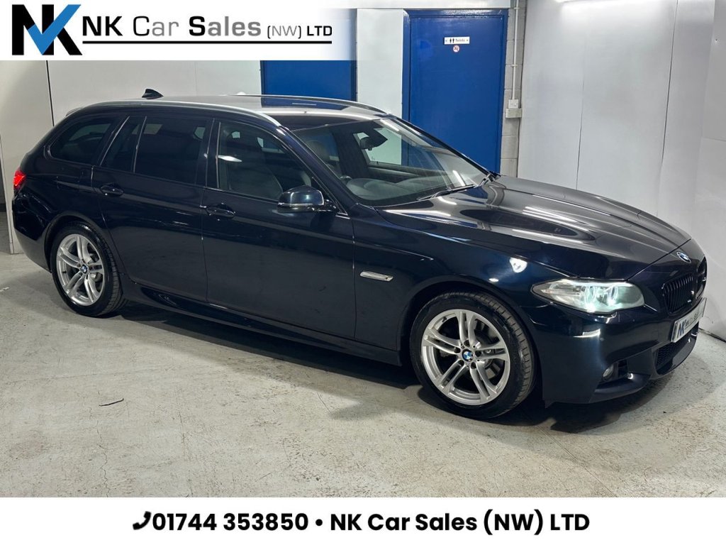 2 Previous Owners, This BMW 5 Series 520D M Sport Tourer 2.0 Diesel Automatic 5 Door Estate has covered 123,000 miles in Carbon Black, with a Black Leather interior. FULL Service History at 16K, 30K, 42K, 46K, 56K, 59K, 68K, 88K, 110K + Freshly Serviced and Pre Delivery Inspected. 12M MOT Upon Sale. 2 Former Keepers. 2 Keys Visit our website to view a video and up to 50 Images Finance Available, Flexible term & Competitive rate. All circumstances considered 6 Months Nationwide Warranty included Part Exchange welcome VOSA Mileage history verified Vehicle History Check is clear with report Nationwide Delivery service available Tailored Videos/Video Calling upon request Credit/Debit Card accepted. Holding Deposit is also welcome Any inspection is more than welcome, please contact to arrange a viewing Appointments outside of opening hours are welcome upon request Contact/Location/Opening times available at www.NKCarSalesNWLTD.co.uk.Finance Available, Part Exchange Available, Full Service History, 12M MOT, 2 Former Keepers, 12V Power Socket Centre Console, 12V Power Socket Rear of Centre Console, 18in Alloy Wheels Light M Double Spoke Style 613M, 402040 Split Folding Rear Seats, 6.5in Colour Display Screen, ABS Anti Lock Braking System, ASC Automatic Stability Control, Air Microfilter, Airbags Curtain, Airbags Driver, Airbags Front Side, Airbags Passenger, Airbags Passenger Deactivation, Alarm System Thatcham 1 with Remote Control, Armrest Front with Storage Compartment, Armrest Rear Centre, Automatically Dimming Rear View Mirror, Auxiliary Input, BMW Emergency Call, BMW Professional Radio Single CD and MP3, BMW TeleServices, Bluetooth Hands Free with USB Audio Interface, Brake Pad Wear Indicator, Bumpers Body Colour, CBC Cornering Brake Control, Child Proof Locking System Rear Doors, Child Seat ISOFIX Attachment Rear x2, Crash Sensor, Crash Sensor Activating Central LockingHazard Warning LightsFuel Cut Off, Cruise Control with Brake Function, DAB Digital Radio, DBC Dynamic Brake Control, DSC Dynamic Stability Control Plus, DTC Dynamic Traction Control, Door Handles Body Colour, Door Mirrors Body Coloured, Door Mirrors Electrically Adjustable, Door Mirrors Heated, Dynamic Brake Lights, EBD Electronic BrakeForce Distribution, Electric Windows Front and Rear with OpenClose Fingertip Control, Engine Immobiliser, Exhaust Tailpipes Twin Chrome, Exterior Trim Chromeline, Exterior Trim HighGloss Shadowline, First Aid Kit, Floor Mats Velour, Full Black Panel Display, Headlights Automatic Activation, Headlights Washer System, Headlining Anthracite, Heated Windscreen Washer Jets, Hill Start Assist, Interior Trim Aluminium Hexagon, Keyless Start, LED Fog Lights Front, Locking Wheel Bolts, Luggage Compartment Automatically Retracting and Lowering Load Cover, M Aerodynamic Bodystyling, M Sport Package, M Sport Suspension, Multifunction Controls for Steering Wheel, Navigation System BMW Business Advanced, OBC OnBoard Computer, OBD On Board Diagnosis, PDC Park Distance Control Front and Rear, PDC Park Distance Control Rear, Power Steering Electric with Servotronic, Rain Sensor, Reading Lights Front and Rear, Roof Rails Matt Aluminium, Run Flat Tyres, Seats Front Heated, Securing Rings in Luggage Compartment, Selflevelling Air Suspension Rear, Smokers Package, Speaker System with Six Speakers,