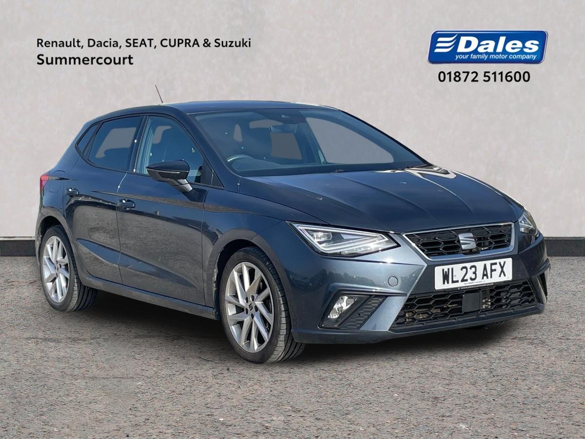 NewquayInsurance Group 11, 0 Previous Owners, The SEAT Ibiza 1.0 TSI 95 FR 5door Hatchback is a stylish and modern car, finished in Metallic Magnetic Tech Grey, giving it a sleek and sophisticated look. This 2023 model has only covered 31069 miles, making it a relatively new and lowmileage vehicle.Equipped with 17" Brilliant Silver alloy wheels and features like full LED automatic headlights, LED tail lights, and rear roof spoiler with FR twin exhausts, this SEAT Ibiza has a sporty edge to its design. It boasts a comfortable interior with cloth upholstery, dual zone climate control, and ambient interior lighting for a pleasant driving experience.The Ibiza is powered by a 1.0 TSI engine with an automatic start and stop system for fuel efficiency. It comes loaded with technology such as a 9.2" touchscreen navigation system, digital cockpit, and full link smartphone integration for connectivity on the go.Safety is a top priority with features including lane assist, traffic sign recognition, tiredness recognition system, and multiple airbags for passenger protection. The car also offers convenience with rear parking sensors, electric adjustable mirrors, and remote central locking.Overall, the SEAT Ibiza 1.0 TSI 95 FR is a wellrounded hatchback that combines style, technology, and safety features for an enjoyable driving experience.