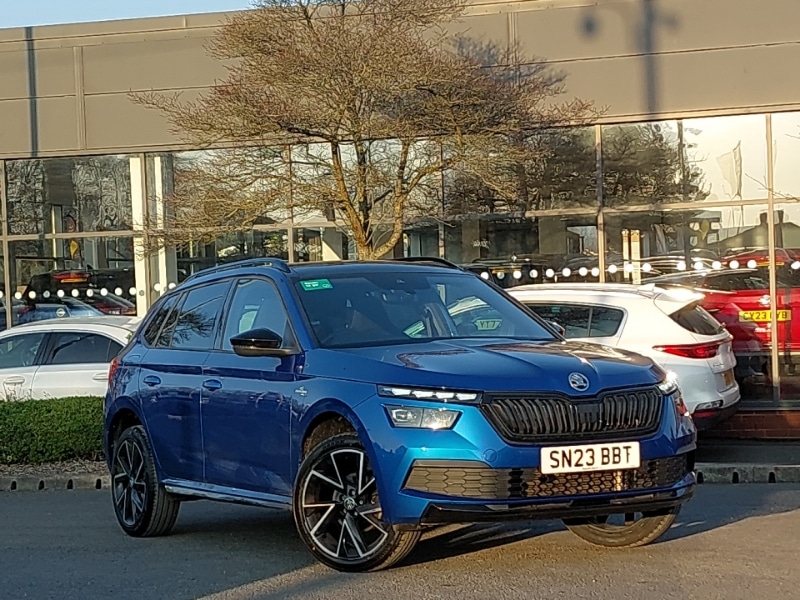 West BromwichInsurance Group 15, Amundsen satellite navigation with 9.2" glass colour touchscreen display, web radio, voice control and traffic sign recognition, DAB Digital radio, Wireless Smartlink for Apple CarPlay (wired for Android Auto), Bluetooth system, Speed limiter, Service indicator, PAS, Gesture control, Front assist system, Ecall, Auxiliary input socket, 8 Speakers, Rear wiper, Rear side wing doors, Rear fog lights, Rain sensor, Privacy glass, Monte carlo plaque, Light sensors, LED third brake light, LED daytime running lights, KAMIQ Door sills, High functionality rear led lights with dynamic indicators, Heated rear window, Headlight range control, Full LED headlights with adaptive front light system, cornering function, fog lights and dynamic indicators, Front sport bumper, Front and rear electric windows, Fixed panoramic sunroof with black roof rails, Electrically adjustable and heated door mirrors, Dimming rear view mirror with black surround, Chrome grille surround, Boot lettering in black, Body colour roof spoiler, Body colour door handles, Body colour bumpers, Black rear diffuser, Black radiator grille, Black door mirrors, Umbrella in driver's door, Top tether for front passenger seat, Third rear headrest, Textile floor mats, Sun visors with illumination on front passenger, Sports seats, Single front passenger seat, Reading lights, Rake/reach adjustable steering wheel, Manual lumbar support for front seats, Leather gear lever, ISOFIX on front passenger seat, Isofix child seat fittings on outer rear seats, Ice scraper, Height adjustable front passenger seat, Glove compartment with illumination, Front head restraints, Cloth upholstery, Chrome inner door handles, Black roof lining, Black ceiling for black/beige interior, Aluminium pedals, 3 seat bench in 2nd row, 12V Accessory socket in centre console, Tyre pressure monitor, Traction control, Seatbelt reminder for driver an codriver, Rear disc brakes, One tone horn, Manual rear child locks, Manual parking brake, Hill hold control, Front side airbags with curtain airbags, Front passenger airbag deactivation switch, ESP, Airbags driver and front passenger, 3x3 point rear seatbelts, Electronic engine immobilizer, Antitheft wheel bolts, Antitheft alarm system with interior monitoring, backup horn, towing protection and remote central locking with SAFE system, Chrome air vent surrounds, 18" Vega alloy wheels in black