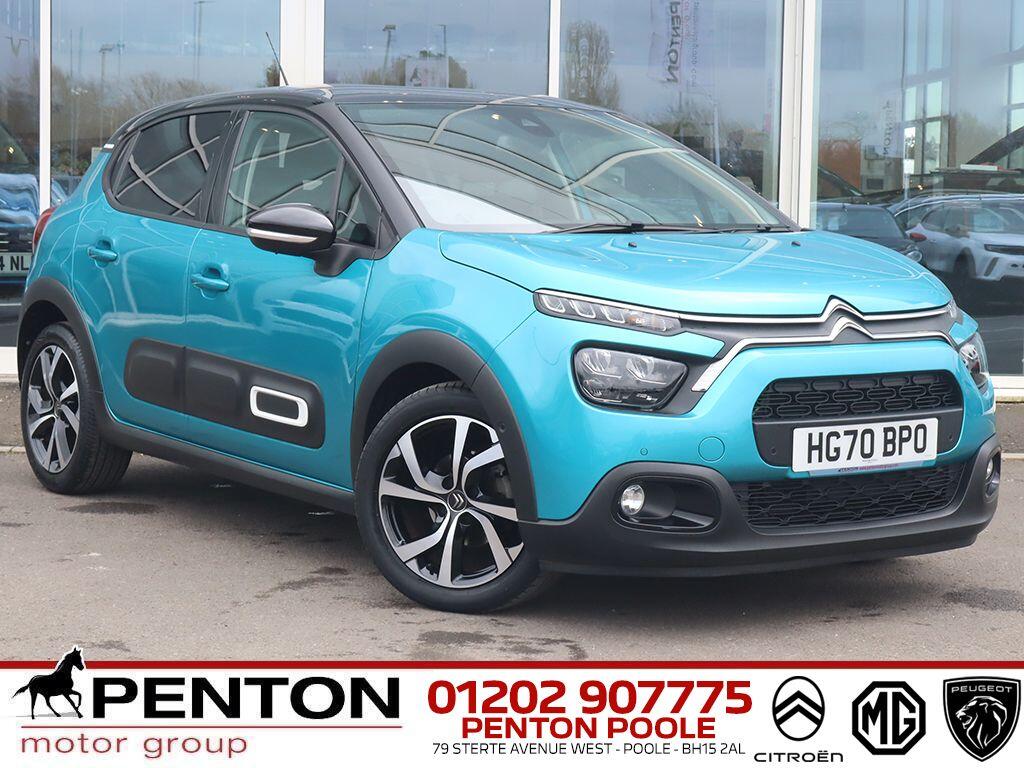 1 Previous Owner, Franchise Approved, LATER 70 REG, ULTRA LOW MILEAGE, TOP SHINE PLUS SPEC in 6 SPEED AUTO with the HIGHER BHP 1.2 PureTech 110 hp PETROL ENGINE, NEW SHAPE with UPDATED FRONT and AIRBUMPS plus ADVANCED COMFORT SEATS and REDESIGNED INTERIOR, WITH FACTORY OPTION FRONT PARKING SENSORS with BLIND SPOT MONITORING ,SATELLITE NAVIGATION, TOUCHSCREEN with APPLE CARPLAY and ANDROID AUTO, REVERSING CAMERA, LED HEADLIGHTS, CLIMATE CONTROL and CRUISE CONTROL, FULL MAIN DEALER SERVICE HISTORY, LOOKS SHARP in SPRING BLUE METALLIC with CONTRASTING BLACK ROOF, ASK ABOUT OUR 3 YEAR PENTON SERVICE PLAN NOW ONLY £699, We have a team of buyers who work very hard to make sure we have the most desirable vehicles in great condition and at the best prices as a result we sell cars to people all over the country, We're a Main Dealer Group in business for over 30 years who are serious about used cars with over 250 physical all make used cars on each site so you can trust all cars are prepared to MAIN DEALER STANDARDS, This vehicle is HPI CLEAR and a FULLY CHECKED Penton Motor Group Approved Used Car. All of our cars are Finance Clear and we never sell write offs, Most cars will be ready to DRIVE AWAY TODAY with 7 Days Free Driveaway Insurance. Finance Available. ALL PART EXCHANGES WELCOME. Warranty Included. Penton Citroen THE BIG Citroen Dealer. Citroen C3 instock incl Feel. Flair. Flair Nav. Flair Plus. Origins. Elle. Saint James. CSeries. Sense. Shine. Shine Plus. Some with. Sat Nav. Leather. Diesel. Auto. ETG. Manual & EGS. THE PENTON WHOLESALE PRICE: