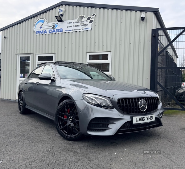 Newry2016 Mercedes E220d AMG LINE PREMIUM PLUS 198 Bhp Automatic Great Finance packages available Only 36,000 milesMet Grey with black Part leather interior Panoramic sunroof New 20" Alloy wheels are optional extraRear privacy glassNight edition styling GT grillE63 style rear diffuser E63 style spoilerLed daytime running lights Xenon headlights Digital dashSatellite navigation system Burmester premium sound systemReverse cameraParking sensors Heated seatsAir conditioning Electric windowsElectric mirrorsRemote central locking Excellent condition throughout INSTANT INHOUSE FINANCEAll Finance packages can be adjusted to best suit your budgetLow deposit options available Credit and debit cards accepted £19450077520582730776370514202830263093