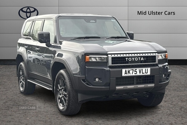 CookstownThis 2025 Toyota Land Cruiser presents an exceptional opportunity with an incredibly low mileage of just 322 miles, making it virtually as new. This 2.8D Auto 4WD LWB Euro 6 (s/s) 5dr model boasts a robust 2.8 litre diesel engine and a capable four wheel drive system, all meeting Euro 6 emissions standards. It has had only one owner and comes with Toyota manufacturer approval, offering peace of mind. Notable features include heated front seats for driver and passenger comfort, rear parking sensors with automatic braking for easier manoeuvring, and a remote air conditioning system. Additionally, it is equipped with a Blind Spot Monitor to enhance safety and auto headlights for convenience. The Land Cruiser is designed for those who demand reliability and versatility, with a substantial towing weight of 3500 kg. The inclusion of advanced driver aids such as the Blind Spot Monitor and rear parking sensors with automatic braking clearly sets this vehicle apart from others in its class, providing a more secure and stress free driving experience. The remote air conditioning system and heated seats ensure comfort in all conditions, while the four wheel drive capability makes it ready for any adventure. This vehicle represents a superb combination of Toyota's renowned durability and thoughtful features., Price Plus VAT