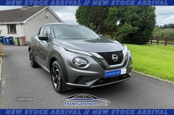 LurganInsurance Group 13, 0 Previous Owners, The 2023 Nissan Juke Manual Petrol is a bold and practical compact SUV, powered by a 1.0litre turbocharged petrol engine paired with a 6speed manual gearbox for a more engaging drive. It offers strong fuel efficiency at around 4750 mpg and is wellsuited for both city and motorway use. Inside, the Juke features an 8inch touchscreen with Apple CarPlay and Android Auto, comfortable seating, and a practical boot. Standard safety features include lane keep assist, traffic sign recognition, and autonomous emergency braking. With its eyecatching design, reliable performance, and solid tech offering, the Juke remains a great choice for drivers who prefer manual control.___________________________________Welcome to Frank Gardiner Car SalesWe are a quality used car dealer with a wide range of cars to suit all budgets. We put customer care at the center of everything we do, endeavoring to provide an excellent service at all times.Our standards have built our reputation and we are proud that our customers recommend us, trust us and come back to us when they want another car.We are passionate about delivering a high quality service and building trust with our customers.The cars we offer are excellent value for money and prepared to a very high standard.