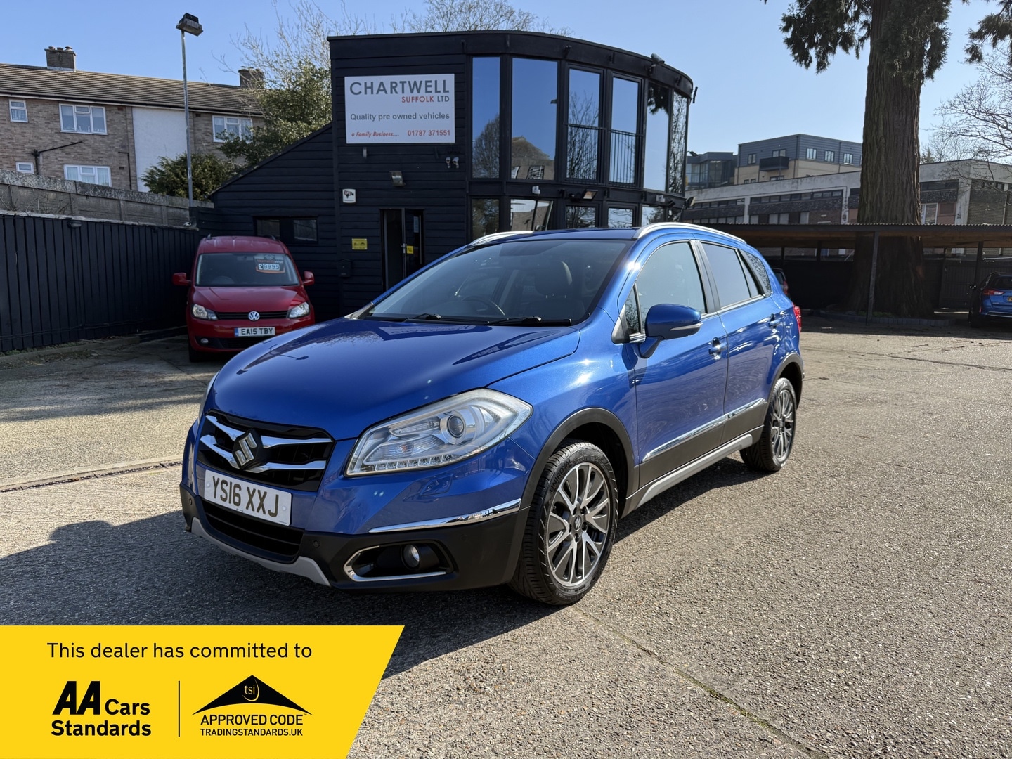 SudburyInsurance Group 14, 1 Previous Owner, Chartwell's are pleased to offer this stunning Suzuki SX4 SCross 1.6 SZ5 for sale. The car comes with a excellent full service history including a fully stamped service book. The last service was on 19/02/2026 at 77,710 miles. Chain driven with no cambelt change to worry about. The current MOT runs until 18/02/2026 passing with 0 advisories . Drives superb. This car is in stunning conditioning throughout. Finished in a lovely colour.and spec this car offers someone excellent value for money. With the low ownership and nice mileage it's sure to go fast. Clearly a very well cared fr car. Mega spec includes the Metallic paint, 17" Alloys, Electric glass sunroof, Full Leather, Heated seats, height adjustable seats, Auto lights, LED running lights, Reverse Camera, Front + Rear parking sensors, Steering wheel controls, cruise control, Keyless Start, Keyless Entry, Remote locking, Factory Satellite navigation, DAB Radio CD Player USB AUX , Dual climate control, Air conditioning, Electric windows, Electric heated mirrors, and much much more. We have the full book pack with a stamped service book and 2 remote locking keys. The car is HPI clear with the printout available. We are an approved AA dealer. All our cars come with free 12 months AA breakdown cover. Driveaway insurance is now offered through the AA. , Our cars (not commercial) come with a 3month/3000 miles warranty as standard unless explicitly sold as a trade sale. We do offer extended warranties through WarrantyWise for 6 months 2year terms. For more information please call.