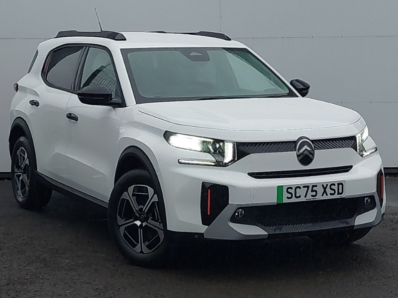 Insurance Group 15, 0 Previous Owners, This is a Click & Collect location. Find your perfect car online and well bring it closer to you. Reserve your favourite for only £99 and arrange collection to this branch. Contact us to learn more. DAB digital radio, 6 loudspeakers, 10.25" capacitive touchscreen, wireless mirror screen includes apple carplay/android auto and bluetooth, Connected 3D navigation, Front and lateral parking sensors, Rear parking sensors, Reversing camera, Cruise control + speed limiter, 17" Aragonite diamond cut bitone alloy wheels with locking wheel nuts, Heated front seats, Automatic air conditioning, Visibility pack C3 Plus and Max, Safety pack C3 Plus and Max, Wireless Smartphone charger, Blind spot monitor, Active lane departure warning system, 1x USBC fast charge on high console, 1x USBC connection on dashboard, Citroen head up display (key driver information projected on to upper dashboard, Citroen connect box emergency and assistance system, Connected services, Engine start button, Electric power steering, eCall emergency call system, etoggle gear selector, Outside temperature sensor, Remote charging, Mode 3 charging cable Monophase 7kW 6metres, Fast charging DC 100kW, Deferred charging via MyCitron app or touchscreen, Advanced comfort suspension with progressive hydraulic cushions, 2x USBC fast charge in row 2, Rear side wing doors, Rear roof spoiler, LED turn indicators integrated into rear view mirrors, LED third brake light, LED rear lights, Black roof bars, Black wheel arch extensions, Dark tinted tailgate and rear side windows, E logo in front doors, Electric front windows with auto up functionality, Electric rear windows with auto down, Electrically heated/folding door mirrors, Electrochrome auto dimming interior rear view mirror, Fog lights integrated into front bumper, Front and rear body coloured bumpers, Front and rear skid plates in grey, Gloss black exterior door handles, Gloss black finish B and C pillar, Gloss black rear view mirror caps, Heated acoustic windscreen, Heated rear window, High beam assist, LED daytime running lights, LED intelligent beam headlights with electric levelling and automatic high beam switching, Automatic headlights, Automatic activation of hazard warning lights, 1 litre bottle storage in front and rear door pockets, 1/3 to 2/3 split folding seats with head restraints on row 2, 12V socket on console, 4x anchoring rings on boot, Advanced comfort front and rear seats, Ambient interior lighting, Bag support hook in boot, Cabin temperature preconditioning, Central storage with 2 cupholders, Chrome effect interior door handles, Closed glove box, Cloth/leather effect upholstery, Driver and passengers courtesy