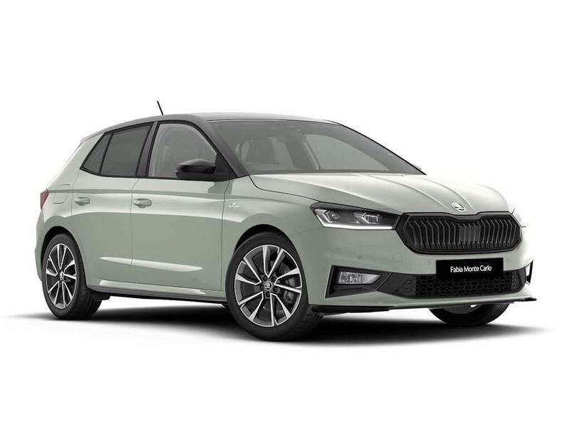 17in Alloy Wheels Procyon Black Painted Diamond Cut, 2 USBC Ports in the Front for Data Transmission and Charging, 3 Spoke Leather Sports MultiFunction Steering Wheel, 3Point Height Adjustable Front Seats Belts with Pretensioner and Force Limiter, 6 Speakers 4 in Front and 2 in Rear, 9.2in Skoda Navigation Display, Advanced Driver Attention And Drowsiness Monitor, Air Vents Monte Carlo, Airbags Front Side, Airbags Head for Front, Aluminium Pedals, Ambient Lighting Pack, AntiTheft Alarm System including Immobiliser Interior Monitoring Backup Horn and Towing Protection, Auto Dimming Rear View Mirror, Automatic Warning Lights in Case of Crash, Badging Monte Carlo, Bluetooth, Bumpers Body Coloured, Central Console with Removable Cup Holder and Storage Box, Central Locking with Radio Remote Control Interior Controls SAFE function and 2 Foldable Keys, Chrome Handbrake Release Button, Chrome Window Surrounds, Convenience Package, Cruise Control with Speed Limiter, DAB Radio, Door Mirrors Black, Door Sill with FABIA Badging, Driver Alert, Driver and Front Passenger Airbags with Front Passenger Airbag Deactivation, Dual Zone Air Conditioning with Climatronic Electronic Control, Dynamic Headlight Range Control, ESC including ABS MSR ASR EDS HBA XDS, ElectroMechanical Power Steering, Front Assist, Front Centre Armrest, Front Windscreen Wipers with Intermittent Function, Front and Rear Electric Windows, Front and Rear Passenger Seatbelt Warning