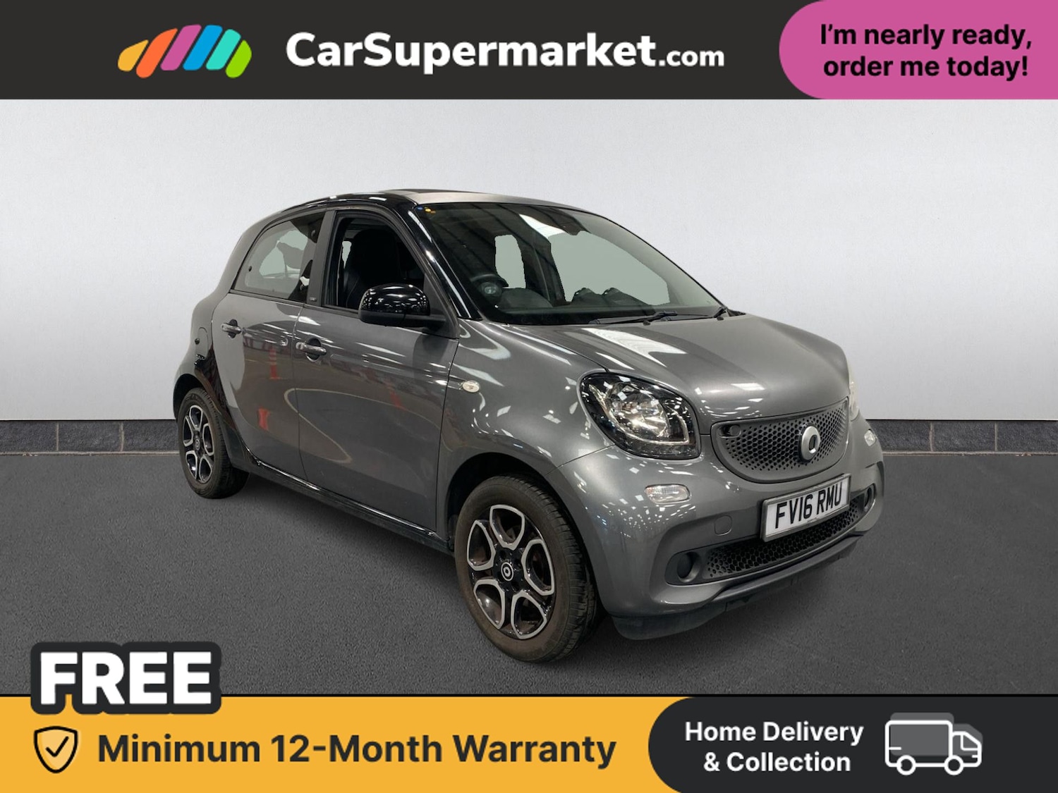Insurance Group 8, The Smart Forfour 0.9 Turbo Prime Premium Auto finished in Grey is a compact and practical city car with the benefit of a smooth automatic transmission. The cabin features full leather upholstery, heated front seats and automatic climate control, ensuring a comfortable environment for both driver and passengers. Technology includes Bluetooth connectivity and satellite navigation, while cruise control makes longer journeys more relaxing. Rear parking sensors assist with manoeuvring in tight urban spaces.