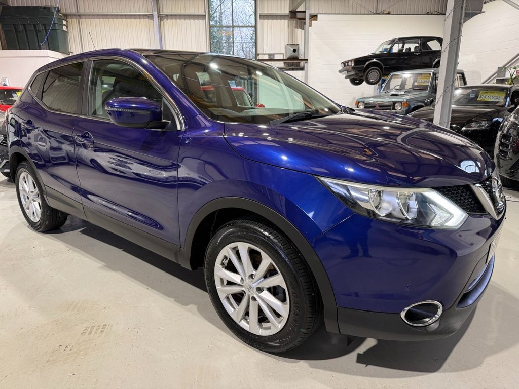 1 Previous Owner, ****100% HPI CLEAR****FULL TRADE HPI CHECK NOT STOLEN NOT WRITTEN OFF NO OUTSTANDING FINANCE BUY WITH CONFIDENCE**** Ribble cars are pleased to present this Lovely 1 Former Keeper Qashqai Acenta+ finished in Metallic Blue with Top Specification including Air Conditioning, DAB, Bluetooth Handsfree with Audio Streaming, Rear Audible and Visual Park Aid, Parking Camera, DLRS LED Running Lights, Double DIN Display Screen, Touchpad, ISOFIX, Cruise Control, Folding Second Seat Row Rear Seats, Satellite Navigation, Factory Privacy Glass, Panoramic Glass Roof and More. Comprehensive Main Agent and Indepedent Service History with the last 72k. 12 Months MOT and 3 Months Warranty at the Full Asking Price. Euro5 £20 Road Tax, Group 15 Insurance and Combined Fuel Consumption of 74.3MPG makes this an Affordable Luxury SUV. LowRate Finance Arranged and Part Exchange is Welcomed. Video Presentations and Nationwide Delivery Available. For further information or to arrange a viewing on this Competitively Priced Example please call our sales team on 01200 401013..Ink Blue, 17in Alloy Wheels 5Spoke in Silver, 6 Speakers, 6040 Split Rear Folding Seats, ABS Anti Lock Brakes, AUXIn Socket, Airbag Driver, Airbag Passenger, Airbags Curtain, Airbags Side, Alarm, Armrest Rear, Auto Dimming Rear View Mirror, Auto Rain Sensing Wipers, Black Honeycomb Front Grille, Body Coloured Handles, Brake Assist, Bumpers Body Coloured, Chrome Glass Surround, Climate Control Dual Zone, Cruise Control with Speed Limiter, DAB Radio, Display Screen Colour TFT 5in, Door Mirrors Body Coloured, Door Mirrors Power Fold and Heated, Driver Seat Height Adjustment, EBD Electronic Brakeforce Distribution, ESP Electronic Stability Programme, Electric SpeedSensitive Power Steering, Front Armrest, Front Collision Avoidance, Front Fog Lights, Front and Rear Electric Windows, Head Restraints Active Front, Head Restraints Rear, Headlights Auto, Headlights Auto HighLow Beam, Hill Start Assist, IKey Keyless Entry, ISOFIX Childseat Anchorage Points Middle Row Outer Seats, Immobiliser, Interior Ambient Lighting, LED Daytime Running Lights, Lane Departure Warning, Leather Gear Knob, Leather Steering Wheel, Luggage Board System, Lumbar Support, NissanConnect, Panoramic Glass Roof, Parking Sensor Front, Pollen Filter, Privacy Glass, Puncture Repair Kit, RadioCD, Rear Cupholder, Rear Door Child Locks, Rear Parking Sensor, Rear View Camera, Remote Central Locking, Satellite Navigation System, Smart Vision Pack, SpeedSensitive Autolock Function, Steering Wheel Mounted Audio Controls, TPMS Tyre Pressure Monitoring System, Telephone Bluetooth Integration, Tilt and Telescopic Adjustable Steering Wheel, Traction Control, Traffic Sign Recognition, Trip Computer, USB Port, ePKB Electric Parking Brake