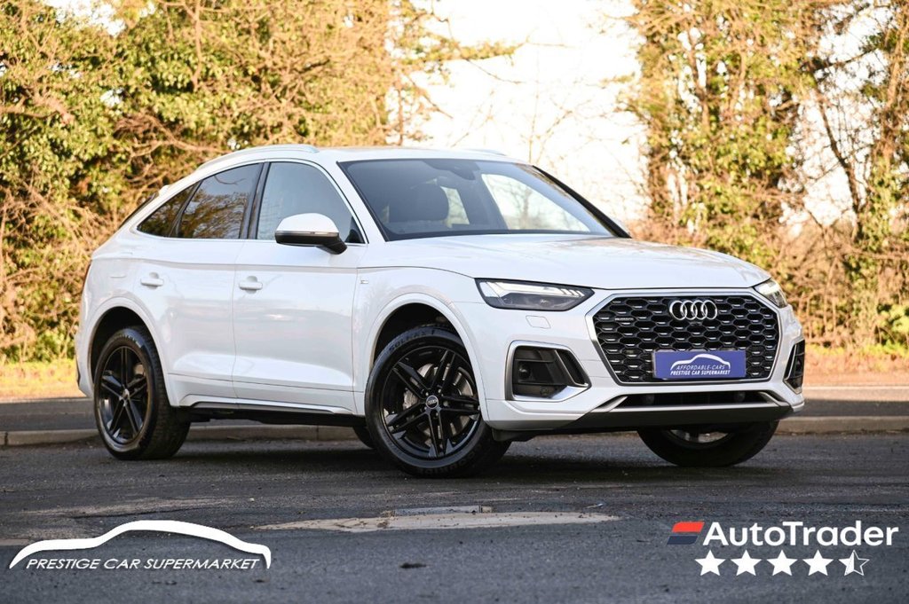 Prestige Car Supermarket in York presents this 2021 Audi Q5 2.0 TDI 40 S line Sportback, a refined quattro diesel SUV finished in Glacier White metallic and paired with 19in 5TwinSpoke Star Design alloy wheels. This S line Sportback combines sporty styling with everyday practicality, featuring Dinamicaleather sport seats in black with contrast stitching, a black cloth headlining and brushed aluminium interior inlays. Standard S line highlights include S line front and rear bumpers, side skirts, rear spoiler and sports suspension, giving the car a confident and athletic stance. Inside, the cabin is centred around the Audi Virtual Cockpit Plus with a 12.3in digital display, MMI Navigation Plus with a 10.1in touchscreen, Audi wireless smartphone interface, Bluetooth and DAB digital radio. Comfort is enhanced by heated front seats, deluxe 3zone electronic climate control, keyless go, a power operated tailgate and a heightadjustable front centre armrest. Safety and driver assistance systems include Audi Drive Select, Audi PreSense City, multicollision brake assist, front and rear parking sensors with acoustic warning, reversing camera, cruise control with speed limiter and ISOFIX child seat mounting points. Additional features include Matrix LED headlights with dynamic indicators, privacy glass, acoustic windscreen, electrically folding heated mirrors, aluminium roof rails and quattro on demand allwheel drive, making this Q5 Sportback a wellequipped and capable premium SUV. With over 1000 5* Reviews Prestige Car Supermarket proudly stands as the premier destination for discerning buyers seeking the best value in prestige vehicles across the UK. Our comprehensive offerings include meticulously prepared cars from our inhouse preparation centre, each undergoing a rigorous multipoint inspection. To secure your desired vehicle, we offer a fully refundable £250 reservation facility accessible online or over the phone, Subject to T&Cs. Sales Executives are available to provide tailored walkaround videos upon request. While every effort is made to maintain accurate vehicle information, specifications may vary. we encourage customers to verify details with our Sales Executives. Recognised as a finalist in the Autotrader Retailer Awards and highly regarded for our commitment to exceptional customer service, we invite you to experience the excellence of Prestige Car Supermarket, Prestige Cars at affordable prices. .DinamicaLeather Sport Seats Black, Glacier White, 19in Alloy Wheels 5TwinSpoke Star Design, 2 USB Charging Ports 1 x USBA and 1 x USBC Port, 3Spoke MultiFunction Leather Steering Wheel with Grips in Perforated Leather and S Badging, 6Airbag System, Aluminium Roof Rails, Anti Theft Locking Wheel Bolts, AntiTheft Alarm, Audi Connect with Amazon Alexa Integration, Audi Drive Select, Audi PreSense City, Audi Virtual Cockpit Plus 12.3in Screen and Three Different Layout Designs, Audi Wireless Smartphone Interface, AutoDimming RearView Mirror, Automatic Headlight Adjustment, Automatic Headlight and Windscreen Wiper Activation, Automatic StartStop with Coasting Functionality and Efficiency Programme, Bluetooth Interface, Body Coloured Door Mirrors, ChromePlated Exhaust Trim, Cloth Headlining in Black, Comfort Front Centre Armrest Height Adjustability and Slide Function, Contrast Stitching on Seats Steering Wheel and Gear Lever Gaiter, Cruise Control System with Speed Limiter, DAB Digital Radio, Deluxe 3Zone Electronic Climate Control, Door Mirrors Electrically Folding and Heated and Auto Dimming, Door Sills in Selenite Silver, ESC Electronic Stabilisation Control inc ABS ASR and EDL, Electric Child Locks for Rear Doors, Electric Windows Front, Electromechanical Parking Brake, Electromechanical Power Steering, Front Air Inlet Surrounds in Aluminium, Front Radiator Grille in Honeycomb Design, Front and Rear Parking Sensor with Acoustic Warning, Gear Lever in Black Leather, Headlight Washers, Heated Front Seats, High Gloss Package, Hill Descent Control, Hill Hold Assist, ISOFIX Child Seat Mounting and Top Tether, Illuminated Door Sill Trims with S Logo, Inlays Matt Brushed Aluminium, Keyless Go, LED Interior Lighting Pack, Lower Bumper Painted in Contrast Manhattan Grey, MMI Navigation Plus with 10.1in Touchscreen, Manual Seat Adjustment with 4Way Electric Lumbar Support, Matrix LED Headlights with Dynamic Front and Rear Indicators, Multi Collision Brake Assist, Pedals in Stainless Steel, PopUp Bonnet for Pedestrian Protection, Power Operated Tailgate, Privacy Glass Rear and RearSide Windows, Rear Chrome Trim Strips Below Lights, Rear Diffuser in Body Colour with Matt Aluminium Silver Insert, Removable Luggage Compartment Floor, Reversing Camera, Roof Bars, S Line Badges on the Front Wing Panels, S Line Front and Rear Bumpers, S Line Side Skirts, S Line Sports Suspension, S line Rear Spoiler, Seat Belt Monitoring, Split Fol