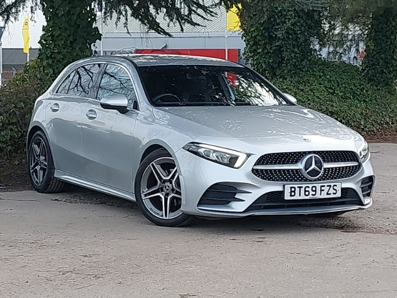 Insurance Group 20, 18" AMG 5 twin spoke light alloy wheels in titanium grey with highsheen finish, Mercedes me connect including emergency call system, accident recovery, breakdown and maintenance management, DYNAMIC SELECT with a choice of driving modes (ECO, Comfort, Sport and Individual), 180 degree rear view camera with parking guidelines, 7" colour screen in instrument panel, 7" touchscreen media display, Cruise control + speed limiter, Harddisk navigation, MBUX multimedia system with DAB digital radio and touchpad including satellite navigation, DAB Digital radio, AMG bodystyling Front apron with splitter in chrome, rear apron with chrome trim and chrome visible trim elements in tailpipe, LED high performance headlamps with integrated LED daytime running lights, Electric adjustable and heated door mirrors with integrated LED side indicators, Seat comfort pack A Class, Light and sight pack A Class
