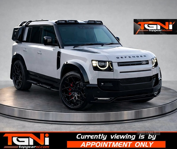 Magherafelt0 Previous Owners, Registered March 26 VAT Qualifying RARE Borasco Grey Defender 110 with lots of upgrades! finished inside with Full Heated Black Leather Interior. Covering delivery miles only with spec to include; Twin axle air suspension Apple/Android Car Play Rear Camera Heated Seats Exterior Black Pack LED Roof light pod Urban NI Front spoiler Gloss black extended arch pack Classic mudflaps Gloss black roof rails Gloss black roof spoiler Colour coded rear wheel cover Gloss black mirrors Black side steps etc.Fitted with Brand New Upgraded 23" Alloy wheels & Tyres Please note these are an optional extra £1,995 other options are available on request.Usual dealer facilities available to include:Competitive Finance Packages from a wide range of lendersUpgraded Warranty availableCredit/Debit Cards acceptedSensibly priced trade in's acceptedAll vehicles come health checked, fully detailed & serviced if required before collection.Opening Hours:MonFriday 9am to 6pm,Saturday 9am to 2pm,Sundays ClosedIndoor bright and dry viewing area available on request.Happy to take on the day AGREED Euro EquivalentServices Include:*Option to extend vehicle warranty*Vehicle service plans available*Fully trained technicians on site in our busy workshop*MOT Prep*Towbars supplied & fitted*Alloy wheel & tyre showroom onsite*Replacement tyre sales*4x4 Styling Packages*Free courtesy car on request