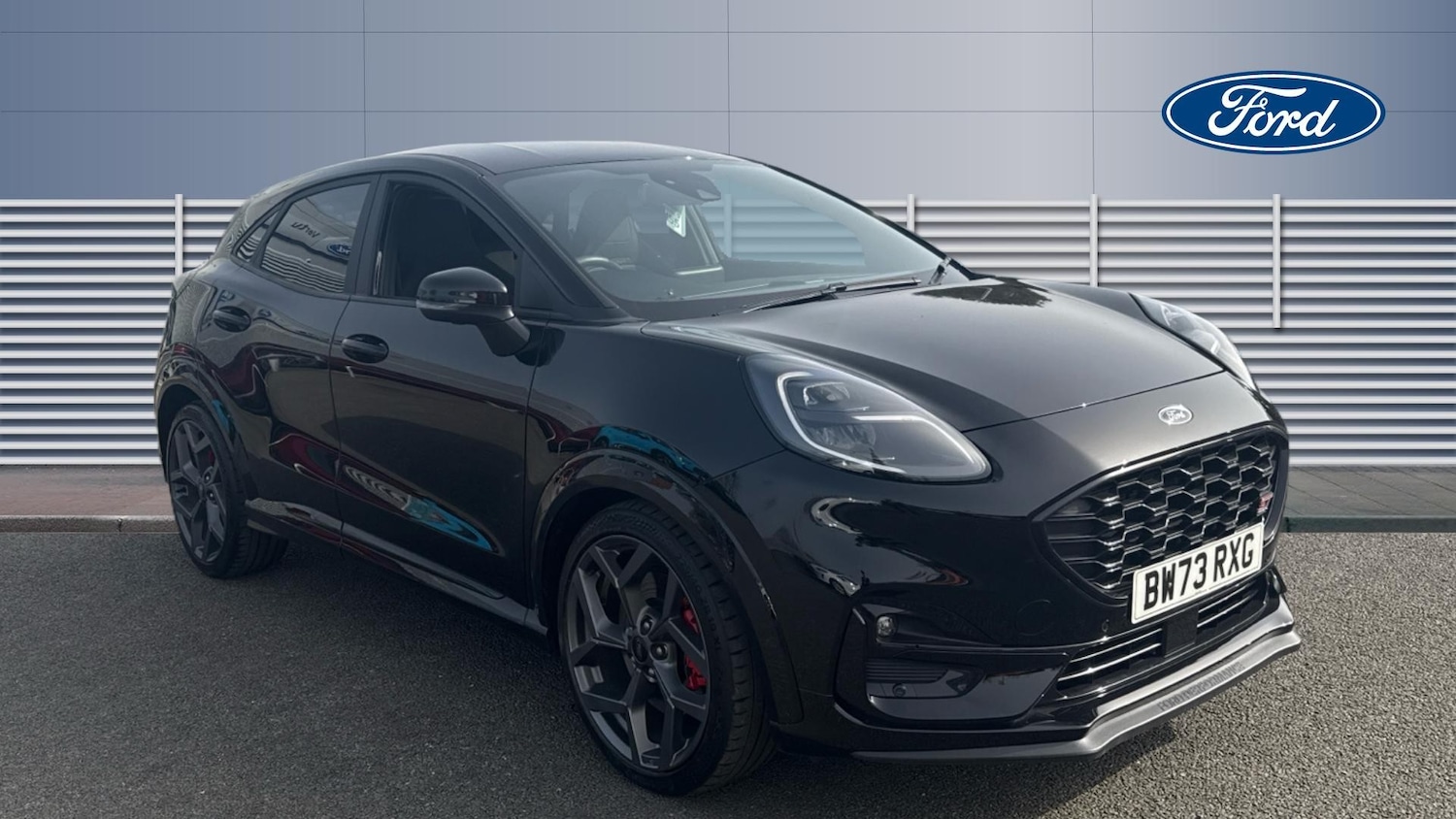 Insurance Group 21, 0, .Front and rear floor mats, Quickclear heated windscreen, Rear wiper, Automatic rain sensing wipers, Privacy glass to side rear windows and tailgate glass, Red brake calipers, Electronic stability control (ESC) and hill start assist, Pre collision Assist system, Pedestrian/cyclist detection & postcollision braking, ST suspension, Front and rear parking sensors, Power assist steering, Speed sign recognition, Lane keeping aid with lane departure warning, Cruise control with Intelligent speed assist, Driver impairment monitor, Ford easy fuel, Selectable drive modes (normal, sport, eco, track), Full digital 12.3" instrument cluster, Emergency call service, Power foldable heated door mirrors with puddle lamps and puma logo protection, Carbon look interior deco spears, Engine sound enhancer, Dual chrome exhaust, ST scuff plates, Rear side wing doors, Unique ST body styling kit including wing mirrors and Ford Performance embossed splitter, Third brake light