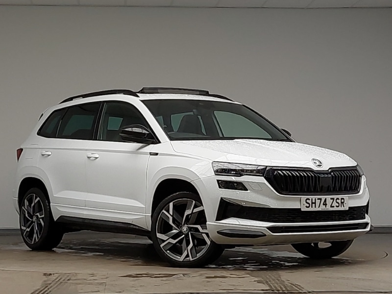 DerbyInsurance Group 20, 0 Previous Owners, SmartLink wireless for Apple and wired for Android, Wireless smartphone charging, Virtual pedal with electrically operated boot door, 8" Digital display, USB C Port x 2 in front centre console, Virtual Cockpit 10.25" digital display, Sensor for driver assistance systems, USB connection, DAB radio with Bluetooth, Auto dimming rear view mirror with light and rain sensors, Black electric window control buttons, Electric front and rear windows with child proof lock, LED daytime running lights, LED rear lights with high functionality welcome effect and dynamic indicators, Light assistant (coming/leaving home/tunnel light), Panoramic sliding sunroof, Privacy glass, Rear window wiper with washer system and intermittent control, 12v socket in front centre armrest with storage compartment and rear air vents, 3 spoke sports leather heated multifunction steering wheel, Rear seats fixed folding and divided 60:40, Manual lumbar support for front seats, Non Smokers pack, Light Pack Karoq, LED Interior lighting pack with Skoda welcome logo Karoq, Electronic parking brake with auto hold function, Front side airbags, Head airbags, Knee airbags, Hill hold control, Pedestrian monitor, Keyless entry and start/stop, Electronic engine immobiliser, Alarm with interior monitoring, back up horn and tilt sensor with safe function, 19" Sagittarius anthracite alloy wheels