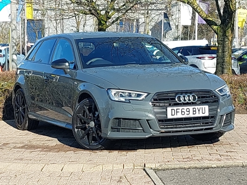Stirling18" 10 spoke design alloy wheels in matt titanium look with diamond cut finish, SD card based MMI navigation, Dual zone electronic climate control, 3 spoke leather multifunction sports steering wheel with paddle shift gear change controls, Audi music interface, Android Auto, Apple CarPlay, LED daytime running lights, Mobile telephone preparation bluetooth interface, Sports suspension, 2 USB interfaces and AuxIn jack, Electrically adjustable and heated door mirrors with integrated LED side indicators, Privacy glass dark tinted rear and rear side windows from Bpillar backwards, Isofix child seat preparation for front passenger/outer rear seats inc passenger airbag deactivation including top tether, Black styling pack A3/S3, LED interior light pack A3/RS3, Storage and luggage pack A3/RS3, Hill hold assist, Remote control central locking