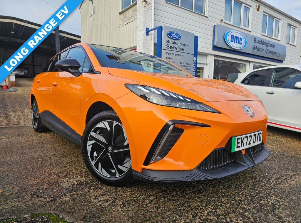 BicesterInsurance Group 29, 1 Previous Owner, This 2022 MG4 Trophy Long Range is a fully electric hatchback with a 64kWh battery and a WLTP range of up to 270 miles. It runs a 150kW motor (200bhp) with rearwheel drive and offers simple, smooth performance suitable for everyday use. The interior includes a 10.25" touchscreen, a digital driver display, Apple CarPlay, Android Auto, a wireless phone charger, heated front seats, and a heated steering wheel. There is seating for five and a practical hatchback boot area. The Trophy trim includes a 360 parking camera, rear parking sensors, adaptive cruise control, lanekeeping assistance, blindspot monitoring, and other standard driverassistance features. Charging can be done via regular AC home charging or rapid DC charging, with 1080% achievable in roughly half an hour on a suitable rapid charger. "Making Car Buying Simple Enjoyable and Stress Free" Accuracy of Information: While every effort is made to ensure the accuracy of vehicle specifications and details provided in this advertisement, errors, inaccuracies, or omissions may occur. Customers are advised to verify all information directly with the dealership. The features, specifications, options, and accessories described in this advertisement are based on the latest available information at the time of publication. .MG WARRANTY TILL 2029!, Volcano Orange, 10.25in Floating Colour Touchscreen, 17in Alloy Wheels with Low Wind Resistance Aero Cover, 2nd Row 6040 Split Fold Seat, 360 Degree Parking Camera, 3x USB Ports 2 Front and 1 Rear, 4 Regenerative Braking Modes Auto123, 5 Driving Modes EcoSportSnowCustomStandard, 6Speaker Audio System with 3D Sound, 7in Full Digital Driver Information Display, ABS and EBD, Active Emergency Braking with Pedestrian and Bicycle Detection, Active Grille System AGS, Adaptive Cruise Control, Airbags Passenger Cut Off Switch, Alarm & Engine Immobiliser, Android Auto, Apple CarPlay, Auto Dimming Rear View Mirror, Auto Headlights, Blind Spot Monitoring, Climate Control, DAB+ Radio, DRL LED Daytime Running Lights, Door Opening Warning DOW, Driver Attention Alert, Drivers Seat Belt Reminder, EBA Emergency Brake Assist, ESP Electronic Stability Programme, Electric Driver 6 Way Adjustable Seat, Electrically Adjustable Folding Heated Black Door Mirrors, Front Dual Airbags, Front Seatbelt 3 Point Pretensioner and Load Limiter, Front Side Airbags, Front and Rear Electric Windows One Touch Down on All Windows, Front and Rear Passenger Seat Belt Reminder, Heated Front Seating, Height Adjustable Loading Floor, Height and Reach Adjustable Steering Wheel, Hill Start Assist, Intelligent High Beam Assist, Intelligent Speed Limit Assist with Traffic Sign Recognition, LED Centre Brake Light, LED Rear Lights, Lane Change Assist LCA, Lane Keep Assist with Lane Departure Warning System, Mobile Phone Bluetooth Key, Parking Sensors Rear, Passenger 4 Way Adjustable Seat, Power Assisted Steering, Projector LED Headlights with Reflective Technology, Rear Centre Light Bar with Cross Hatch Design Effect, Rear Cross Traffic Alert, Rear ISOFIX x2, Rear Privacy Glass, Satellite Navigation, Side Airbag Curtain, Steering Wheel Heated, Steering Wheel Leather, TPMS Tyre Pressure Monitoring System, Tinted Glass, Traffic Jam Assist, Twin Areo Rear Spoiler, TwoTone Black Roof, Type 2 Charging Cable, Vehicle to Load Charging, Wireless Mobile Phone Charger, iSmart with Live Services, Leather Style with Cloth Inserts Black
