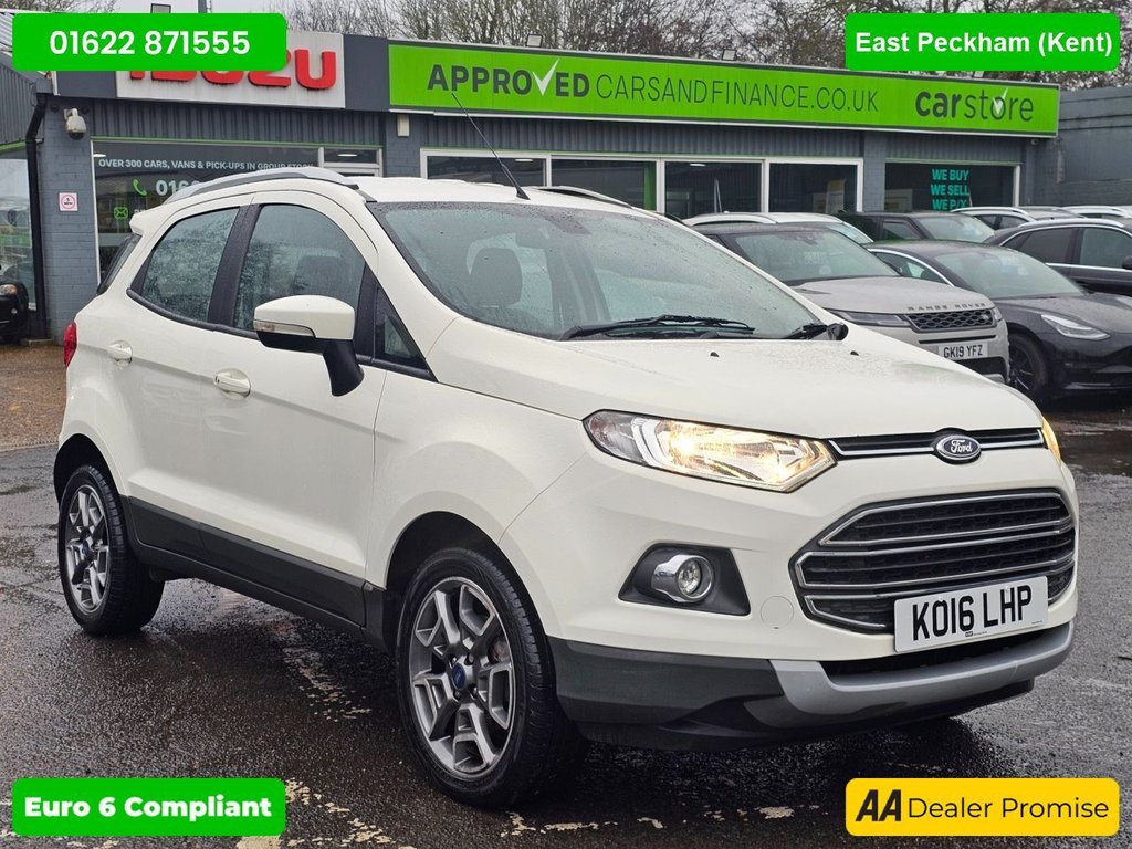 Insurance Group 10, 1 Previous Owner, Boasting an exceptionally low mileage for its age, this 2016 Ford EcoSport TDCi Titanium presents a superb ownership proposition. With only two previous owners and a full service history, including a recent service at 58,626 miles on 11 September 2025, this vehicle has been meticulously maintained. It features a fuel efficient 1.5 litre diesel engine, meeting Euro 6 emissions standards, and comes with 12 months MOT for your peace of mind. Notable features include Electronic Automatic Temperature Control for comfortable cabin climate, a KeyFree System for effortless entry and starting, and automatic headlights for enhanced visibility. This Ford EcoSport stands out with its impressive 64 mpg fuel economy, indicating it is more economical to run than many similar vehicles. Furthermore, its low CO2 emissions and low insurance group highlight its cost effectiveness, making it an attractive choice for budget conscious drivers. This combination of low running costs, excellent provenance, and desirable features makes this EcoSport TDCi Titanium a compelling option. A 3 month warranty is also included, offering further reassurance. Opening hours are 9.00am 5.30pm Mon to Sat and 10.00am5pm Sun.. All major debit cards accepted. Finance and Warranties are available. Approved Cars make it our business to try to get you a good deal on your purchase & if you require finance we can help no matter what your financial situation. The vehicle specifications are provided by Autotrader and may differ from the actual vehicle. Please verify that the features most important to you are present, as the specifications are autogenerated by Autotrader. All of our cars are HPI checked and come with a 3month mechanical breakdown warranty as standard (excluding trade clearance cars), HPI certificate & MOT print out. We also offer a drive away same day facility and a home delivery facility. We can face time you a live demo of the car of your choice upon request.12V Power Socket Front, 17in Alloy Wheels 5x2 Spoke, ABS Antilock Braking System, Airbag Front Passenger, Airbags Curtain, Airbags Passenger Deactivation, Airbags Side Impact, Automatic Dimming Rear View Mirror, Automatic Rain Sensing Wipers, Cruise Control, Door Handle Integrated in Rear Light, Door Mirrors Electrically Operated, Drivers Airbag, EATC Electronic Automatic Temperature Control Climate Control, EBA Emergency Brake Assist, EBD Electronic Brakeforce Distribution, Electric Windows Front and Rear, ESP Electronic Stability Programme, Floor Mats Carpet Front and Rear, Ford EasyFuel Capless Refuelling System, Front Fog Lights with Integrated Daytime Running Lights and Chrome Surrounds, Front Grille Chrome Finish, Front Seatback Map Pockets Driver and Passenger, Glovebox Cooled, Headlights Automatic, HLA Hill Launch Assist, KeyFree System, Leather Steering Wheel with Remote Audio Controls, LED Signature Lights, Pollen Filter, Power Assisted Steering, Radio CD with USB Connector Aux Input and Ford SYNC, Rake Adjustable Rear Seat, Rake and Reach Steering Adjustable, Scuff Plates Silver, Seats 6040 Rear Split Back, Seats Drivers Lumbar Support, Seats Drivers Manual Height and Tilt Adjustment, Silver LowerBumper Lip Front and Rear, Silver Roof Rails, Stowage Pockets Front Seatback, Thatcham Category 1 Alarm, Traction Control TC, Trip Computer, Tyre Pressure Monitoring System