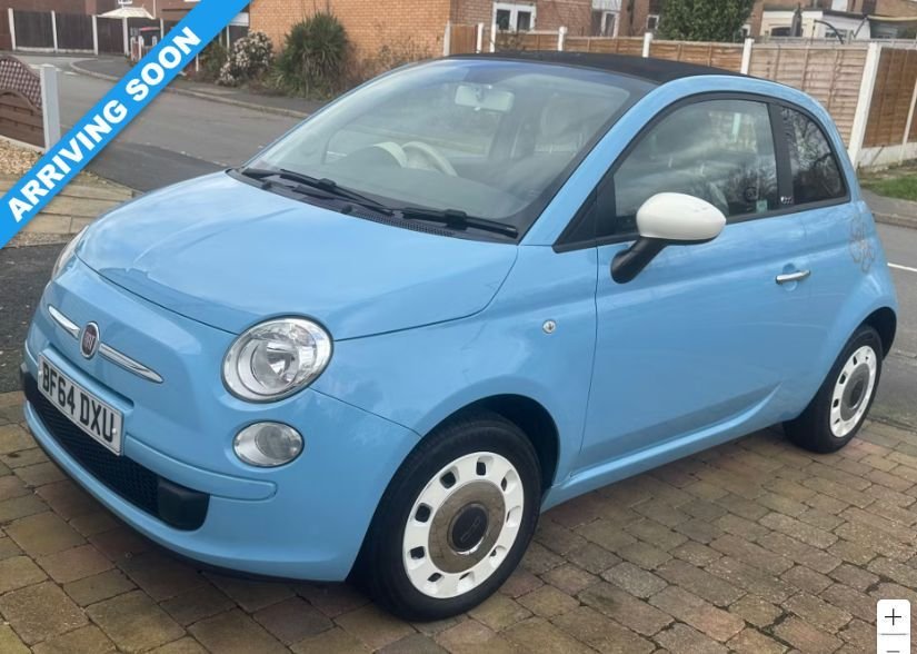 BicesterInsurance Group 12, 2 Previous Owners, 2014 FIAT 500C 1.2 Colour Therapy Convertible Cute, Fun & Ready for Sunny Drives! ?????? If youre looking for a car thats stylish, fun and full of personality, this FIAT 500C 1.2 Colour Therapy Convertible is the perfect match! With its iconic Italian design and electric convertible roof, you can enjoy opentop driving whenever the sun decides to show up. Powered by the reliable 1.2 petrol engine (69 bhp) with a manual gearbox, its economical to run and super easy to drive making it an ideal choice for firsttime drivers, students or anyone wanting a cute city car that stands out from the crowd. The FIAT 500C is famous for its retro styling, fun interior and compact size, meaning its great for city driving and slipping into those tricky parking spaces. Plus, dropping the roof on a sunny day instantly makes every journey feel like a mini road trip. Why youll love it: ???? Convertible soft top perfect for sunny days ???? Stylish Colour Therapy edition with loads of character ? Excellent fuel economy easy on your wallet ????? Small, light and super easy to park ???? Euro 6 (s/s) ULEZ compliant ???? Good service history well looked after About us: Were a small familyrun business, and we pride ourselves on offering friendly service and carefully selected cars. No pressure, just honest advice and a relaxed buying experience. Viewings and test drives are very welcome! Send us a message if youd like more details or want to come and see this lovely convertible its ready for its next adventure! ? "Making Car Buying Simple Enjoyable and Stress Free" Accuracy of Information: While every effort is made to ensure the accuracy of vehicle specifications and details provided in this advertisement, errors, inaccuracies, or omissions may occur. Customers are advised to verify all information directly with the dealership. The features, specifications, options, and accessories described in this advertisement are based on the latest available information at the time of publication. .12V Socket Front, 14in Steel Wheels, 14in Wheel Covers White, ABS AntiLock Braking System, ASR AntiSlip Regulation, Air Conditioning, Airbags Driver, Airbags Front Side, Airbags Passenger, BAS Brake Assistance System, Body Coloured Bumpers, Body Coloured Door Mirrors, Drivers Knee Airbag, Dualdrive Power Steering, EBD Electronic Brakeforce Distribution, ESP Electronic Stability Programme, Electric Front Windows, Fix and Go Puncture Repair Kit, GSI Gear Shift Indicator, Grab Handle, Hill Holder, Locking Wheel Nuts, MSR Motor Slip Regulation, RadioCD and MP3 Player, Remote Central Locking, Seats Passengers Memory Function, Space Saver Spare Wheel, Steering Wheel Height Adjustment, Steering Wheel Ivory, Thermal Windows, Tyre Pressure Monitor System, Window Airbags, Blue&Me Hands Free System with USB Port, Cloth Grey with Ivory Ambience and Black Roof, Steering Wheel Leather with Audio Controls, Stickers Ivory Flower, Volare Blue