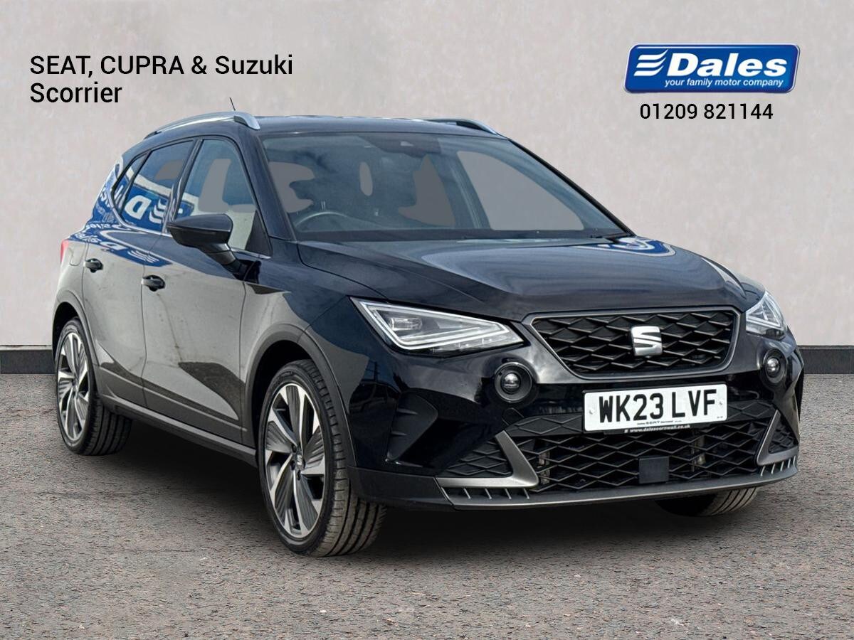 RedruthInsurance Group 12, 1 Previous Owner, The SEAT Arona 1.0 TSI 110 FR Edition 5door Hatchback, with just 19979 miles on the clock, is a stylish and modern vehicle. Finished in a sleek midnight black with a contrasting grey roof, this 2023 model is a headturner. The exterior features chrome roof rails and window surrounds, along with full LED automatic headlights and LED daytime running lights. Inside, you'll find a comfortable and techsavvy cabin with dualzone climate control, a full Link Smartphone Integration system, and ambient lighting.Safety is a top priority in the SEAT Arona, with features such as emergency Brake Assist, Lane Keeping System, and a Tiredness Recognition System. The vehicle is also equipped with multiple airbags, ISOFIX points, and a tyre pressure monitoring system to ensure peace of mind on the road.Under the hood, the Arona is powered by a responsive 1.0 TSI engine that offers a good balance of performance and fuel efficiency. The vehicle also boasts a smooth electric speedsensitive power steering system and a range of driving modes to suit different preferences.Overall, the SEAT Arona FR Edition is a versatile and wellequipped hatchback that offers a comfortable ride and a host of modern features for today's driver.