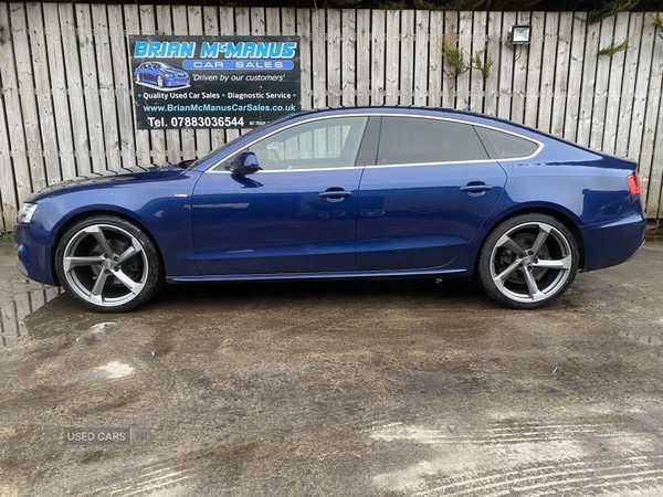 Dungiven2016 Audi A5 2.0 TDI SLine 190Bhp Sportback Auto, lovely Top Spec A5 and looks great in the Blue, car has strong service History, has just been serviced by ourselves, Timing Belt has also been done, drives a dream, well specd car with Auto headlights Daytime running lights Bluetooth On board computer Multi function steering wheel Electric windows Optical front and rear Parking sensors Electric handbrake with auto hold ISO FixLeather Heated Sports Seats Navigation Finance available !!, get in touch to discuss a finance package to suit your needs 85k£10450Call Brian on 07883036544 to arrange a Viewing/ Book a test Drive View all our stock on our website www.BrianMcManusCarSales.co.ukAll cars Hpi checked and come with 3 months warranty