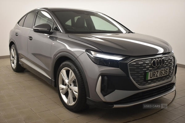 Belfast0 Previous Owners, The Audi Q4 offers a versatile and comfortable driving experience, making it suitable for a wide range of motorists. With a mileage of just 20,855, this electric vehicle has been well maintained, providing peace of mind and continued reliability. The automatic transmission ensures smooth progress on any journey, while the interior has been designed with both comfort and practicality in mind.Presented in grey with contrast bumpers in manhattan grey, the Q4 features body coloured door mirrors and S line exterior styling for a refined and modern appearance. Privacy glass to the side and rear windows, S line badges on the front wings, and LED daytime running lights contribute to its contemporary look. The poweroperated tailgate and single frame grille with a structured, closed surface within an octagonal shape add to the vehicle's sophisticated styling.Inside, the Q4 is equipped with threezone automatic air conditioning, heated front seats, and a comfort front centre armrest, providing a pleasant atmosphere for all occupants. The driver and front passenger benefit from fourway electric lumbar support, manual seat height adjustment, and black cloth headlining, with accent surfaces in gloss black enhancing the interior's modern appeal. Stainless steel pedals, illuminated door sill trims with the S logo, and a threeseat bench in the second row further demonstrate attention to detail.Specification highlights include the Audi Virtual Cockpit with a 10.25inch display, MMI Navigation Plus with an 11.6inch touchscreen, and wireless Audi Smartphone Interface. Safety features are comprehensive, with presense front including pedestrian and cyclist detection, lane departure warning, camerabased traffic sign recognition, and multiple airbags. Additional amenities such as progressive steering, power folding and autodimming mirrors with kerb view, and keyless Go offer both convenience and reassurance