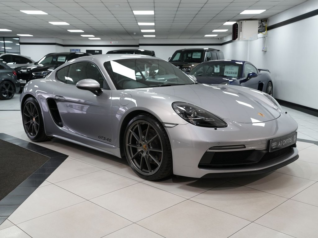 Insurance Group 46, 1 Previous Owner, IMPECCABLE 718 CAYMAN GTS JUST ARRIVED INTO STOCK! ONLY ONE FORMER KEEPER FROM NEW COVERING 22K MILES BACKED WITH FULL SERVICE HISTORY! POWERED BY THE NATURALLY ASPIRATED 4 LITRE FLAT SIX ENGINE DERIVED FROM THE GT4/BOXSTER SPYDER PRODUCING 400PS! VERY RARE EXAMPLE! FINISHED IN THE GORGEOUS GT SILVER METALLIC! SPEC INCLUDES, BOSE PREMIUM SURROUND SOUND, FRONT AND REAR PARK ASSIST, WHEELS PAINTED IN SATIN PLATINUM, BRAKE CALIPERS PAINTED IN HIGH GLOSS BLACK, SPORTS EXHAUST SYSTEM, ADAPTIVE CRUISE CONTROL WITH PORSCHE ACTIVE SAFE, PORSCHE ACTIVE SUSPENSION MANAGEMENT (PASM), HEATED FRONT SEATS, 20 INCH 718 SPORT ALLOY WHEELS, TWO ZONE AUTOMATIC CLIMATE CONTROL, ELECTRIC FOLDING MIRRORS, LEATHER DASHBOARD TRIM, DOOR TRIM PACKAGE IN LEATHER, LEATHER SILL COVERS, LED HEADLIGHTS INCLUDING PORSCHE DYNAMIC LIGHT SYSTEM PLUS (PDLS PLUS), AUTO DIMMING MIRRORS WITH INTEGRATED RAIN SENSOR, FIRE EXTINGUISHER, SILVER GREY SEAT BELTS, FABRIC ROOF LINING, BLACK LEATHER INTERIOR, SMOKING PACKAGE! RARE, VERY SOUGHT AFTER INCREDIBLE EXAMPLE, EARLY VIEWING IS ESSENTIAL TO AVOID DISAPPOINTMENT, COMPREHENSIVE WARRANTY OPTIONS AVAILABLE , AA BREAKDOWN AVAILABLE STUNNING SHOWROOM CONDITION, MUST BE SEEN NOT TO BE MISSED, FIRST TO SEE WILL BUY, BE VERY QUICK THIS GEM WILL SOON GO!, VIEW MORE PICS ON OUR WEBSITE, PLEASE CALL FOR FULL SPEC, SIMPLY STUNNING! Every effort has been made to ensure the Vehicle details are correct, however errors may occur please check details with our Sales Team before visiting.20in Alloy Wheels Carrera Sport, Adaptive Cruise Control, Automatically Dimming Mirrors with Integrated Rain Sensor, BOSE Surround Sound System, Brake Calipers Painted in Black HighGloss, Dashboard Trim Package in Leather, Door Trim Package in Leather, Door Trim Package in LeatherRaceTex, Electrically Folding Exterior Mirrors, Fire Extinguisher, Leather Interior Package with Leather Interior, LED Headlights including Porsche Dynamic Light System Plus PDLS Plus, Seat Belts Silver Grey, Smoking Package, TwoZone Automatic Climate Control, Wheels Painted in Satin Platinum