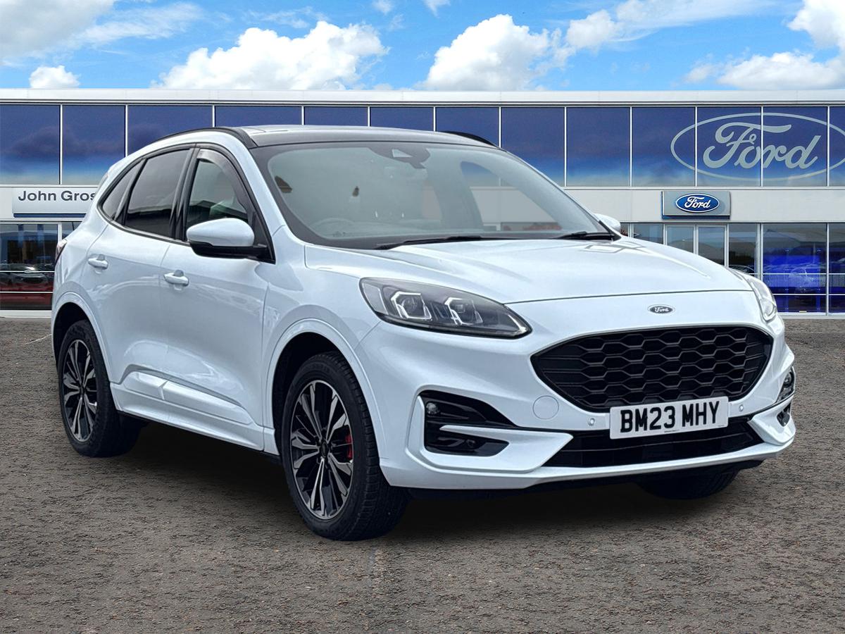 Insurance Group 21, 0 Previous Owners, ..12.3'' digital colour instrument cluster, Ford easy fuel, Ford SYNC 3 with 8'' TFT LCD touchscreen, App Link, andriod auto/apple carPlay, emergency assistance and navigation with Ford pass connect, Front and rear parking sensors, Geo awareness, Hands free power tailgate, Lane keeping aid with lane departure warning, Power assist steering, Rear view camera, Selectable drive modes, Service interval indicator, 3Pin Home charge cable (230V/16A Domestic socket), 3.7 kW monophase on board charger, Sports suspension, Twist beam rear suspension, B&O premium audio system with 10 speakers and subwoofer, 2 USB ports, DAB radio/CD, Auto headlamps with high and low beam, Black roof rails, Body colour bumpers, Day/night rear view mirror, Front LED fog lamps, Large rear roof spoiler, LED daytime running lights, LED rear lights, Power folding, electrically adjustable and heated door mirrors with puddle lights, Power front/rear windows with global close, Power opening panoramic roof, Quickclear heated windscreen, Rain sensing wipers, Rear privacy glass, Rear side wing doors, Rear wiper, ST Line body styling kit with unique front and rear fascia and bumper, rear painted diffuser, front painted skid plates, dark mesh upper grille, ST Line front scuff plates, Third brake light, Twin exhausts, 2nd row sliding seats with 60:40 split, Alloy pedals, Centre console with electronic parking brake, Dark headlining and pillars, Electronic automatic temperature control (EATC), Flat bottomed leather steering wheel in sensico with red stitching, Front and rear head restraints, Heated passenger and driver seats, Heated rear seats, Heated steering wheel, Partial premium touch Sensico with black cloth inserts and red stitching, Rear centre head restraint, Single front passenger seat, Sports seats, ST Line front and rear floor mats, 3x3 point rear seatbelts, Airbags front driver/passenger, front and rear curtain, Drivers knee airbag, Electronic stability control (ESC) and ABS, Ford MyKey Gen 2 safety system, Manual child proof rear door locks, Post collision braking, Pre collision assist with autonomous emergency braking, Rear seat Occupancy alert, Red brake calipers, Tyre pressure monitoring system, Engine immobiliser, Keyless entry and Ford power start button (Keyless start), Locking wheel nuts, Remote powered central double locking doors, Thatcham category 1 alarm