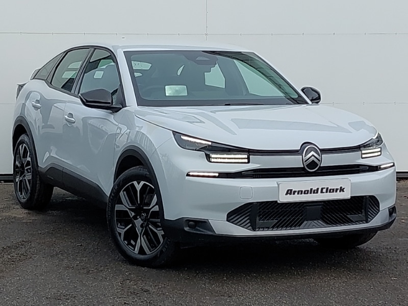 This is a Click & Collect location. Find your perfect car online and well bring it closer to you. Reserve your favourite for only £99 and arrange collection to this branch. Contact us to learn more. Apple car play and Android auto, My Citroen Drive Plus: 10" highresolution touchscreen user interface, controlling media, connectivity, vehicle settings + connected nav, Cruise control + speed limiter, Automatic headlights, High level acoustic insulation pack C4/C4 X/eC4 X, Citroen connect box emergency and assistance system, Citroen Smart Pad Support integrated support for attaching a tablet computer for front passenger, Incrash braking, Electronic Power Steering (EPS), Voice commands, Advanced comfort suspension double hydraulic stops on front and rear suspension, DAB Digital radio, Bluetooth telephone and audio streaming, 6 speakers, Welcome and goodbye lighting, Standard interior rearview mirror with manual daynight switching, Shark fin roof aerial, Rear wiper, Rear side wing doors, Rain sensing automatic front windscreen wipers, Perla Nera black painted external rear view mirrors, LED front headlamps, Gloss black rear skirt, Front and rear electric windows, Electrically heated, folding and adjustable external rear view mirrors, Body colour door handles, Body colour bumpers, 3rd brake light, Split folding rear seats, Single front passenger seat, Raised centre console with armrest and two cup holders, Height and reach adjustable steering wheel, Height adjustable front passenger seat, Height adjustable driver's seat with adjustable lumbar support, Grained leather steering wheel with two command blocks, Front head restraints, Dual zone automatic air conditioning, Driver and passenger sunvisors with illuminated vanity mirrors, Dashboard tray in front cabin, Boot light, 3 seat bench in 2nd row, 3 rear headrests, 12V power outlet, 1x USB TypeC socket charging & data connection and 1x USB TypeA socket in 1st row and 1x USB TypeA socket charging in 2nd row, Manual deactivation of front passenger airbag, Manual child lock in second row, Hill start assist, Front seatbelt pretensioners, ESP, Electric parking brake, Driver and front passenger airbags, ABS, 3x3 point rear seatbelts, Two remote keys, Remote locking with deadlocks, Immobiliser, Puncture repair kit with compressor