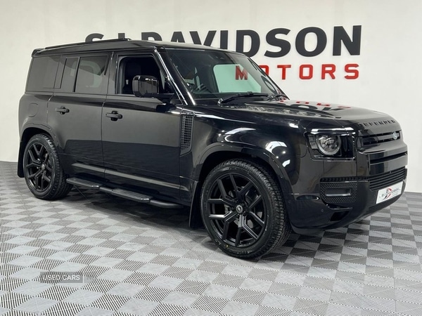 DungannonFinished in Santorini Black with Ebony Interior, this stunning Defender has been Factory Spec'd with the Panoramic Sunroof, Twin Axle Air Suspension, Detachable Towbar, Privacy Glass, Exterior Black Pack and then dealer fitted with Side Steps, Towbar & Spare Wheel Cover. The 22" Alloys photographed are an optional upgrade. With over 60 years of heritage, S.J Davidson Motors is Northern Ireland's leading premium car dealership. From bespoke vehicle sourcing to UKwide delivery, every car is prepared by expert technicians with meticulous attention to detail offering you nothing less than excellence