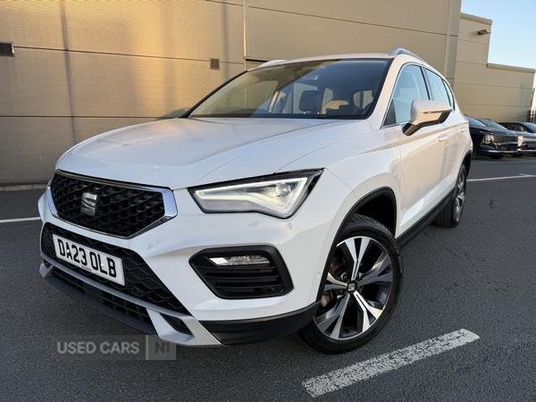 LurganInsurance Group 10, One keeper from new. May 2023 first registered. Seat Ateca SE TECHNOLOGY 1.0 TSi 110bhp petrol with 6speed manual gearbox. Nevada White paint. 9,961 miles. CO2 146g/km. Full Seat authorised repairer service history: Oil service at 7,773 miles on 07/05/2025 + brake fluid + pollen filter. The presentation of this car is superb it is immaculately kept. On the exterior body panels there are no obvious visual blemishes of any nature. There are no visual scrapes, scores or heavy stone chips on any of the panels. The 18 diamond cut alloy wheels are visually prefect without any visible curbing marks. All four tyres are Bridgestone premium brand. NSR and OSR tyres have 5.00mm tread. OSF and NSF tyres 4.00mm tread. With tyre inflation kit. The interior is equally pristinely kept. There are no signs of wear and tear on the grey fabric cloth upholstery. There are no obvious visual heavy marks on the cabin trim panels or plastics. Non smokers car. 2x remote keys present. Locking wheel nut present. Textile floor mats are fitted. The balance of Seat's 3Year/60,000 mile warranty applies until 14/05/2026 subject to continued manufacturer recommended routine servicing conditions met. We will extend the warranty cover for a total period of 12 months form the date or purchase. 12 months breakdown assistance included