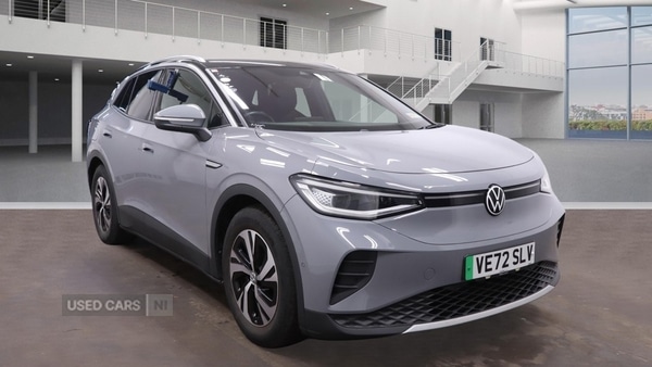 BelfastThe Volkswagen ID.4 offers a modern driving experience, balancing practicality with a refined electric powertrain. With 27,001 miles covered, it reflects regular use while benefiting from the inherent reliability of Volkswagen engineering. An automatic gearbox ensures smooth and effortless journeys, complemented by advanced features such as adaptive cruise control and a heated steering wheel to enhance comfort during daily commutes or longer trips.Finished in grey, the ID.4 presents a contemporary and understated appearance. Bodycoloured bumpers, door handles, and door mirrors with integrated indicators contribute to its cohesive look. The interior features Art Velours microfleece cloth upholstery, a multifunction steering wheel with decorative aluminium inserts, and ambient lighting in 30 selectable colours, creating a pleasant space for both driver and passengers.Specification highlights include acoustic glazing with darkened rear windows, a heated and soundinsulating windscreen, and heated washer nozzles to ensure clear visibility in varying conditions. The 10inch capacitive touchscreen navigation infotainment system, wireless app connectivity, and comfort telephony with wireless charging cater to modern connectivity needs, while illuminated smartphone storage and multiple USBC charging ports provide added convenience.Safety and security are supported by an array of systems, including the Blind Spot Information System (BLIS), curtain and side airbags, electronic stability programme, and proactive passenger protection. Further features such as an antitheft alarm with interior monitoring, remote central locking, tyre pressure monitoring, and child seat anchors underscore the vehicle's focus on everyday practicality and reassurance