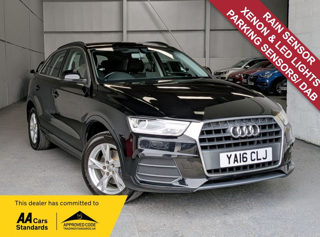 GlamorganInsurance Group 20, 2 Previous Owners, ** Vehicle Reg YA16 CLJ ** This Mythos Black Audi Q3 TDI SE from 2016 offers excellent value with its MOT valid until March 2027 and a recent service in September 2025. This Euro 6 compliant 2.0L diesel model has had only two owners and comes with a three month warranty for your peace of mind. It features Dual Zone Electronic Climate Control, Xenon Plus Headlights with LED Daytime Running Lights, and Rear Parking Sensors to make every journey more comfortable and convenient. The Light and Rain Sensor automatically adjusts your headlights, while the Bluetooth Interface allows for seamless connectivity. This Q3 TDI SE stands out with its impressive fuel economy, achieving an outstanding 63 miles per gallon, which is significantly better than many other vehicles in its class. Furthermore, its low CO2 emissions and low insurance group rating indicate that running costs are kept to a minimum, making it a very economical choice for everyday driving. Contact us now to arrange your test drive viewing, or book your appointment directly on our website 24/7! We are Bhakar Watts Cars; awarded Highly Recommended by Auto Trader! We pride ourselves on quality customer service and a NO pressure sales approach. With over 30 years combined motor trade experience. Our sales ethos is to supply great quality used vehicles at extremely competitive prices. All of our vehicles are price checked within a 100 mile radius before being advertised. All vehicles are sold with a 3 month warranty and 12 Months free AA Breakdown cover ( or upgrade to your existing cover). Please feel free to call/Whats app /email us to arrange an appointment to view/test drive one of our high quality used vehicles. We look forward to seeing you soon! .Mythos Black, 17in Alloy Wheels 7J 5Spoke Y Design, 3Spoke MultiFunction QDesign Steering Wheel, 4Way Electric Lumbar Support for Front Seats, 6.5in Display Screen, 8 Passive Speakers, AMI Audi Music Interface, Aluminium Roof Rails, Aluminium Window Trims, Anti Theft Locking Wheel Bolts, Audi Drive Select, Bluetooth Interface, BodyColoured Door Mirrors Electrically Adjustable and Heated with Integrated LED Indicator Signals, Bright Moulding, Cloth Headlining, Concert Radio, DAB Digital Radio, Door Sill Trims with Aluminium Inlay, Driver Front Passenger Front Side and Head Airbag System, Drivers Information System DIS, DualZone Electronic Climate Control, Dynamic Suspension, ESP Electronic Stability Programme, Efficiency Program in the Drivers Information System DIS, Electric Windows Front and Rear, Electromechanical Parking Brake, Electromechanical Power Steering SpeedSensitive Provides a Precise Steering Feel at High Speeds and Excellent Assistance when Parking., First Aid Kit, Floor Mats Front and Rear in Velour, Front Centre Armrest, Front Passenger Airbag Deactivation Switch, Front Sports Seats, Front and Rear Fog Lights, Full BodyColour Finish on BumpersWheel Arch TrimsLower Door Trims, Heated Windscreen Washer Jets, ISOFIX Child Seat Mounting, Inlays Micrometallic Flex Silver, Light and Rain Sensor, Preparation for SD CardBased Navigation System, Rear Parking Sensors, Remote Central Locking, Reversible Luggage Compartment Floor, Seat Belt Monitoring, Seats Split Folding Rear Backrest, Smoking Package, Space Saver Spare Wheel, Stainless Steel Loading Sill Protector, Steering Wheel Height and Reach Adjustable, Thatcham Category 1 Alarm and Immobiliser, Tool Kit and Car Jack, Towbar Preparation, Tyre Pressure Loss Indicator, Voice Control System, Warning Triangle, Washer Fluid Level Indicator, Windscreen with Sunband, Xenon Plus Headlights with LED Daytime Running Lights