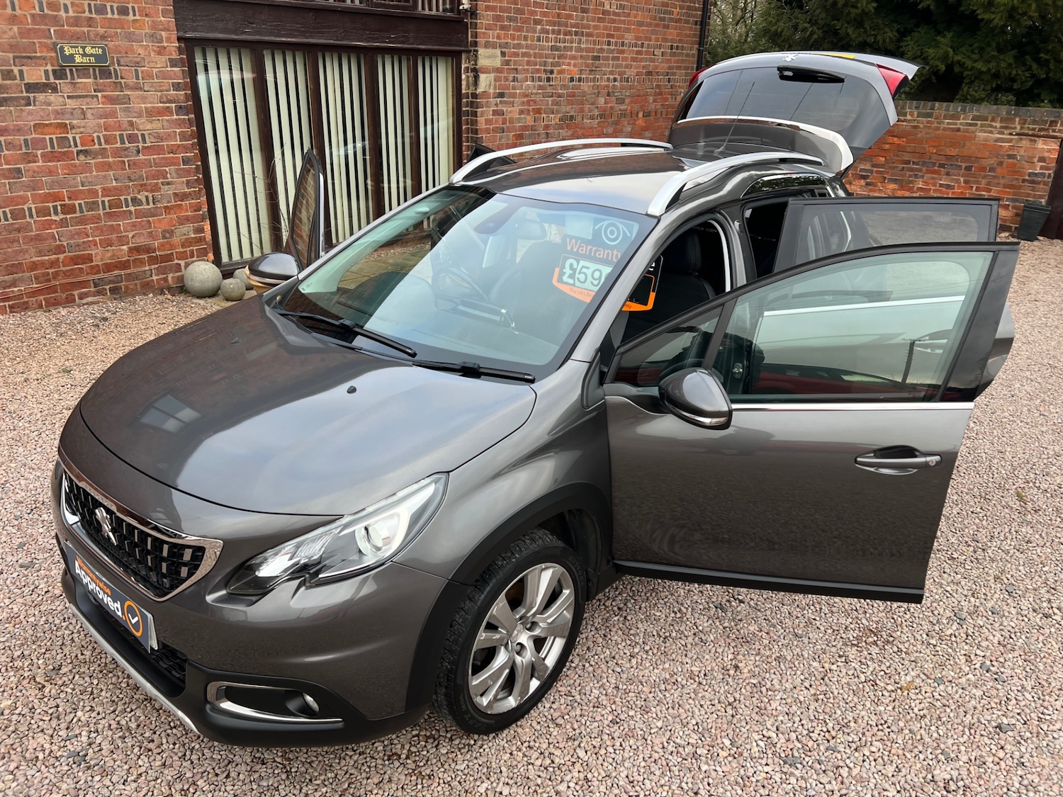 KIDDERMINSTERInsurance Group 17, 1 Previous Owner, ****** ARRIVING SOOM **** 2018 (SD18 OPT) ONLY 2 OWNERS FROM NEW PEUGEOT 2008 1.2 PureTech 110 ALLURE 5 DOOR ESTATE STYLE /HATCHBACK * GREAT ECONOMICAL 1.2 PETROL ENGINE * 5 SPEED MANUAL GEARBOX * SERVICE HISTORY & BENEFITING FROM A RECENT SERVICE READY TO DRIVE AWAY * GREAT COLOUR "GREY" PAINTWORK * PRIVACY GLASS * HALF LEATHER INTERIOR * AMBIENCE MOOD KIGHTING ON THE HEAD LINNING * ELECTRIC WINDOWS* FM RADIO*AUX IN * ELECTRIC MIRRORS* AIR CONDITIONING * BLUETOOTH * CRUISE CONTROL * MULTIFUNCTIAL STEERING WHEEL * REMOTE CENTRAL LOCKING * AUTO LIGHTS * AUTO WIPERS * PLEASURE TO DRIVE* DRIVES SUPERB * HPI CLEAR NOT CAT C OR D* ANY INSPECTION WELCOME INCLUDING AA OR RAC* IF INTERESTED PLEASE CALL 8AM TO 8PM THANKS********* WARRANTY'S CAN BE PURCHASED AT EXTRA COST'S IF REQUIRED ************************************** 3 MONTHS 6 MONTHS 12 MONTHS **************** REASONS TO BUY FROM US :We provide a personal and friendly service with a stress free approach.We believe in combining both quality and affordability in our cars.We are genuine and honest and have repeat business.All cars Hpi clear (unless stated).Save £100's if not £1000's off forecourt prices.We are an independent small family run business, priding ourselves on a professional, helpful and honest outlook.I have been in the industry for over 30 years and for years sold cars for a profession.We now get repeat business and have built a very good rapport with previous clients.All cars are test driven for around 50 miles or more and any mechanical issues are rectified.All cars sold with no known issues unless stated in the advert