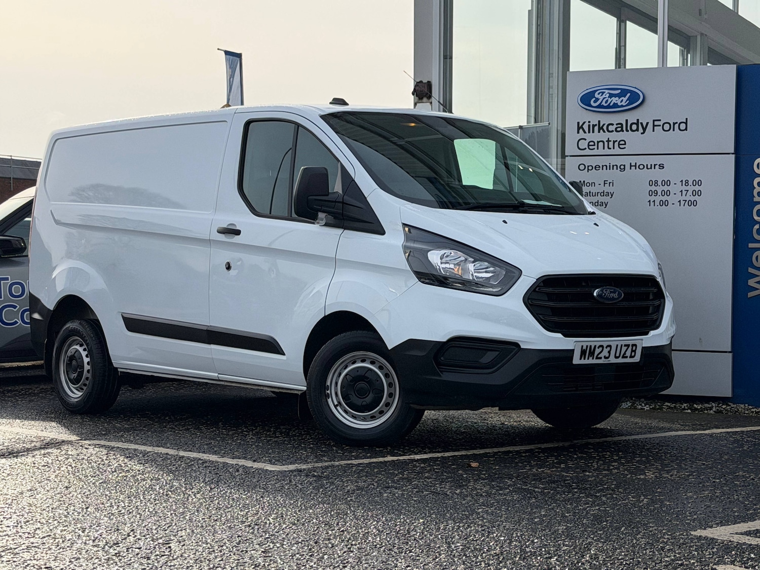 1 Previous Owner, 3 point seatbelts for all seats, Driver's airbag, Dual note electric horn, Front seatbelt pretensioners, Height adjustable drivers seatbelt mount, Passenger seatbelt height adj, Seatbelt remainder for driver and passenger, Blind spot monitor, Easy fuel capless refuelling system, Embedded modem, Ford Eco mode, Low series cluster, PAS, Selectable drive mode, Trip computer, Vehicle maintenance monitor, 180 Degree rear cargo check arms, Automatic headlamps with follow me home, Black coloured lift/decklid exterior handles, Black dual manual signal mirrors, Black exterior door handle, Black exterior mirror finish, Complete grille with 3 bars, Daytime running lights, Door open tyre carrier drop, Electric front windows with one touch facility for driver and front passenger, Emergency brake light flashing, Front splash guards/Mud flaps, Halogen headlamps, Headlamp levelling, Intermittent front wash/wipe, Kerbside side load doors, Low roof line, Part body colour front bumper, Quad beam headlamps, Rear cargo hinged door, Rear door edge warn reflectors, Rear mudflaps, Rear splash guards, Self coloured rear bumper, Solid paint, Tinted glass, Unrestricted side load door opening, Wide bodyside grey mouldings, 2 Interior grab handles, 6 Load compartment tie down loops, Cloth upholstery, Driver non illuminated sunvisor, Floorwell lights, Full width unglazed steel bulkhead with through load hatch, Glove box lid, Header mounted courtesy lights 2 map lights, Header mounted package tray, Height adjustable front headrests, Leather steering wheel, Load compartment interior light, Mini overhead console, Molded gear shift knob, Partial molded headliner, Partial rubber inside floor cover, Passenger non illuminated sunvisor, Passenger underseat storage box, Reach and rake adjustable steering column, Recirculation heater, Tool kit, Front seat pack 7 Transit Custom, ICE Pack 17 Transit Custom, Interior trim accent pack A Transit custom, Less rear seat pack Transit Custom, Auto locking on driveaway, Auto relocking, Configurable Unlocking, Multi channel door entry remote and 3 Button key fob, Non locking lug nuts, Power door dead locks, Remote central locking, Speed dependent power lock group, Two step door unlock system, 2 12v sockets, 80 litre fuel tank, ABS, Auto start/stop system, Diesel particulate filter, ESP, Extra heavy duty alternator, Mechanical parking brake, Misfuelling device, Non limited slip differential front axle, Power point plug 400W Level 2, Roll, Price Plus VAT