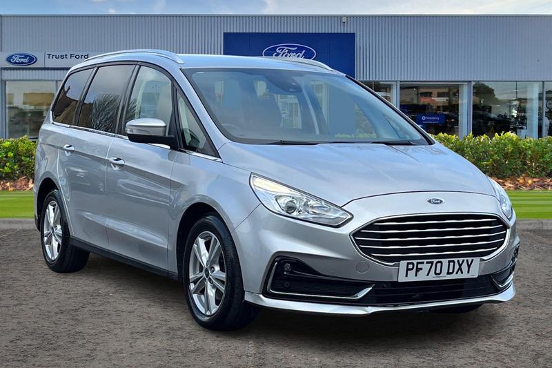 'Ford Power' starter button, 10.1 semi digital cluster, Easy fuel capless refuelling system, eCall emergency call system, Ford pass connect embedded modem, Front and rear parking sensors, Hydraulic PAS, Lane keeping aid Driver impairment monitor, active steering with lane departure warning, Lights on warning, Outside temperature display, Traffic sign recognition, Trip computer, Auto dimming rear view mirror, Auto high beam assist, Automatic headlights, Automatic wipers with variable sensitivity adjustment, Body colour bumpers, Body colour door mirrors, Chrome trim to lower side windows, Dual exhaust pipes, Electric front and rear windows + one touch + global open/closing, Front fog lights, Halogen headlight with cornering lights, LED daytime running lights, LED rear lights, LED third brake light, Lower front grille with chrome surround, Power folding and heated door mirrors, Quickclear heated windscreen, Rain sensor, Rear privacy glass dark glass to rear windows, Rear side wing doors, Silver roof rails, 2 height adjustable headrests 3rd row, 230V power outlet in centre console, 2nd row reading lights, 3 height adjustable headrests 2nd row, 3 individual fold flat 2nd row seats, 3rd row rear seats with manual fold flat, slide/recline and manual easy entry, Ambient interior lighting (excludes 2nd row footwell), Driver/passenger sunvisors with illuminated vanity mirrors + covers, Dual zone air conditioning, Floor mats in all three rows, Front door scuff plates, Front headrests,