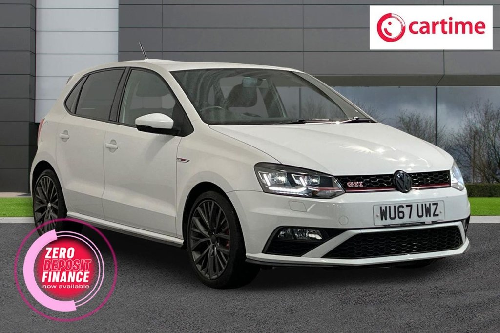 Insurance Group 29, 2 Previous Owners, This 2017 Volkswagen Polo TSI GTI presents a remarkable opportunity with its exceptionally low mileage of just 53,171 miles for its age. This particular model, a Euro 6 compliant vehicle, is equipped with a spirited 1.8 litre petrol engine, delivering an engaging driving experience. Notable features include advanced LED headlights for both dipped and main beam, ensuring excellent visibility. For your comfort, it comes with manual air conditioning, and the Composition Media system offers seamless Bluetooth connectivity for your devices. The performance of this Polo GTI is truly a standout, with an impressive 060mph acceleration time of only 6.7 seconds. This brisk acceleration indicates a level of responsiveness and dynamism that sets it apart from many other vehicles in its class. Combined with its comprehensive features and well preserved provenance, this Volkswagen Polo TSI GTI offers a compelling package for those seeking both style and substance. Lifetime warranty available on this car, plus a £1,000 finance contribution when you part exchange. Voted UK Car Supermarket of the Year two years running, we offer 0% finance, part exchange, and lifetime warranties across our entire range. Every car is thoroughly inspected before sale and comes with a full history check, so you can buy with complete peace of mind. Buy with confidence on our best finance rates. Proud winners of the CarGurus TopRated Dealer 2022 and the MotoNovo Extra Mile Award. .17in Alloy Wheels Parabolica, ABS Antilock Braking System with HBA Hydraulic Brake Assist, Air Conditioning Manual, Air Vent Surrounds Matt Chrome, Airbags, Alarm with Interior Protection, Aluminium Look Pedals, Automatic PostCollision Braking System, Bag Hooks in the Luggage Compartment x2, Black Gloss Instrument Surrounds, Black Rooflining Internal Grab Handles and Sun Visors, Body Coloured Door Handles, Body Coloured Rear Spoiler, BodyColoured Door Mirrors with Integrated Indicators, Brake Calipers Red, Brake Light Housing in Black, Carpet Mats Front and Rear with Red Stitching, Centre Console with Open Storage and 12V Socket with Cover, Chrome Trimmed Front Air Intake Surround, Composition Media System, Cruise Control, Cup Holders Front x2, Darkened Rear Light Cluster, Dashboard and Centre Console GTI Style Decorative Inserts, Door Mirrors Electrically Adjustable and Heated, Door Sill Protectors Stainless Steel with GTI Logo, Driver Alert System, Drivers and Front Passengers Safety Optimised Head Restraints, Dust and Pollen Filter, Electric Windows Front, Electric Windows Rear, Electronic Engine Immobiliser, ESC Electronic Stability Control including EDL Electronic Differential Lock and ASR Traction Control, Exhaust Tailpipes Chrome Twin, Extended Sill Strips Flared in Black, Front Fog Lights with Static Cornering Function, Front Seat Back Storage Pockets, Front Sports Seats with Height Adjustment, Front Windscreen Washers and Wipers with 4 Speeds including Interval Delay, Gear Lever Gaiter Surround Matt Chrome, Glovebox, Grab Handles Front x2 Rear x2 with Integrated Coat Hooks, GTI Styling Pack, Handbrake Grip Button Matt Chrome, Heated Rear Windscreen Automatically Switches Off, Heating and Ventilation with 4 Speed Fan and Air Recirculation, Height Adjustable Front Seats with Under Seat Drawers, Height and Reach Adjustable Steering Wheel, HeightAdjustable Front ThreePoint Seat Belts with Tensioners, High Level 3rd Brake Light, Hill Hold Function, Honeycomb Radiator Grille with Red Stripe, Instrument Lighting White Adjustable Panel Illumination, Interior Lighting with Delayed Switch Off, ISOFIX Child Seat Preparation for 2 Rear Seats, Jacara Cloth Black/Red, Leather Trimmed Multifunction Steering Wheel with GTI Logo Red Stitching and Paddle Shift, LED Headlights for Dipped and Main Beam, Lights on Warning Buzzer, Load Sill Protector, Luggage Compartment Cover Removable, Luggage Compartment Light, Ma