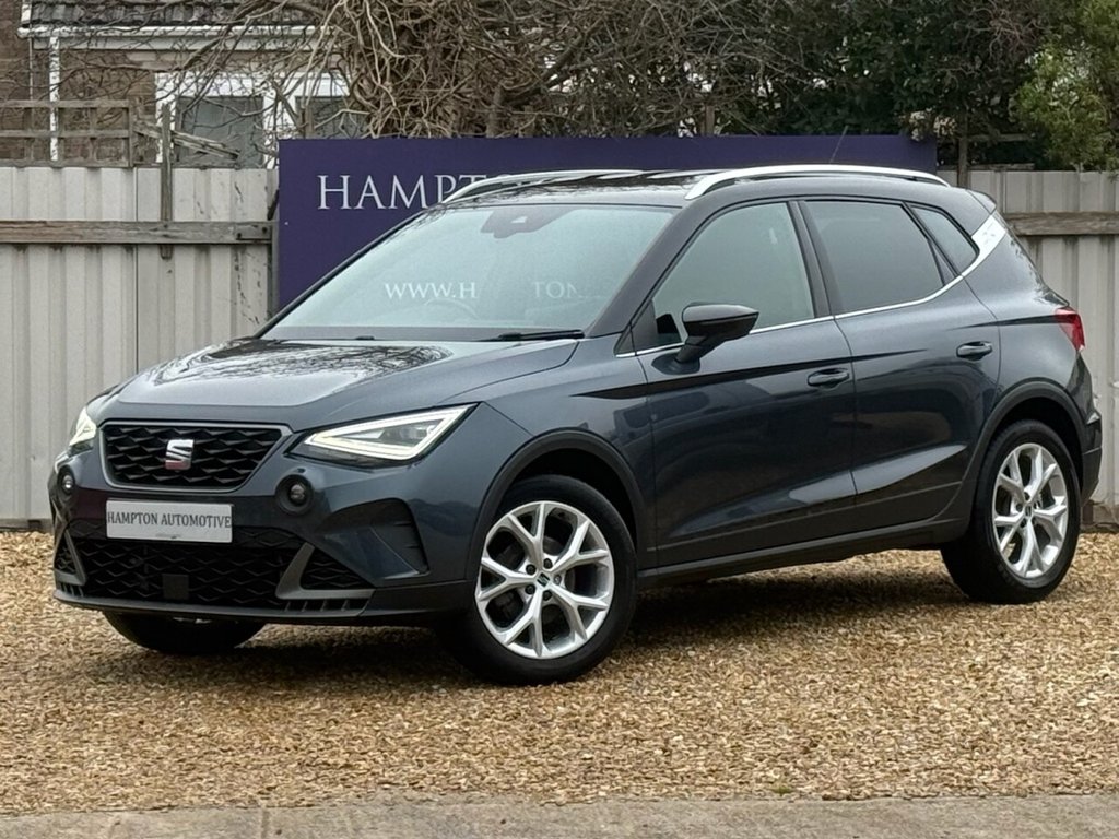 BridportInsurance Group 12, 0 Previous Owners, Metallic Grey with Contrasting Black Roof ,Full LED Headlights, Touchscreen Media System with Smartlink/Apple Car Play and Android Auto Smart Phone Interface, Bluetooth Hands Free Telephone System with Wireless Charging, Digital Dual Zone Air Conditioning, Full LED Headlights with DRls, Multi Function Steering Wheel with Cruise Control, Electric Windows, Electric Mirrors, Remote Central Locking, Trip Computer, 17" Dynamic Alloy Wheels, Rear Parking Distance Control with Radar Display, DAB Digital Radio/USB with Media, Seat Drive Select with Driving Nodes, Front Fog Lights, ESP with Traction Control, Multi Airbags, Lovely Arona FR with 110Ps Turbo Engine.17in Alloy Wheels Dynamic, 9.2in Touchscreen Display, Aircare Filter, Alarm with BackUp Horn, AntiLock Braking System ABS, Auto Dimming Rear View Mirror, Black Interior Roof, Bluetooth Audio Streaming with Handsfree System, Chrome Roof Rails and Window Surround, Coloured Air Vent Daring Red, Coming Home Leaving Home Headlight Function, Contrast Roof, Cruise Control with Speed Limiter, Dark Tinted Rear Windows, Digital Cockpit 8in, Double Boot Floor, Driver and Front Passenger Airbags, Dual Zone Climate Control, EBA Emergency Brake Assist and Front Assist, Electrically Adjustable Folding and Heated Door Mirrors, Electronic Engine Immobiliser, Electronic Stability Control ESC, Emergency Tyre Repair Kit, Front and Rear Electric Windows, Front and Rear Fog Lights with Cornering Function at Front, Front and Rear Seatbelt Reminder, Front Courtesy Light with Front Reading Lights, Full LED Automatic Headlight, Full Link Smartphone Integration, Height Adjustable Front Seats, Hill Hold Control, Illuminated Air Vent Surrounds, Interior Ambient Light, Interior Chrome Pack, Interior Light in Footwell Centre Console and Door Panel, ISOFIX Points in Outer Rear Seats with Top Tether Anchorage Points, Lane Keeping System, LED Daytime Running Lights, LED Rear Taillights, Licence Plate Lights, Locking Wheel Bolts, Magnetic Tech Grey with Black Roof, Perforated Leather FlatBottomed Steering Wheel with Red Stitching and FR Logo with Leather Gear Knob and Handbrake, Power Assisted Steering, Protective Side Moulding, Rain Sensing Wipers, Rear Parking Sensors, Rear Spoiler, Roof Coloured Door Mirrors, SEAT Connect Safety Service Remote Online, SEAT Drive Profile, Side Airbag in Front with Curtain Airbag, Six Speakers, Split Folding Rear Seats 6040, Sunvisors with Mirror and Cardholder Driver Side, ThreePoint Seatbelts on All Rear Seats, Tiredness Recognition System, Titan Black Dashboard, Twin Exhaust Pipes, Two Front and Three Rear HeightAdjustable Headrests, Tyre Pressure Monitoring System, Wireless Phone Charger