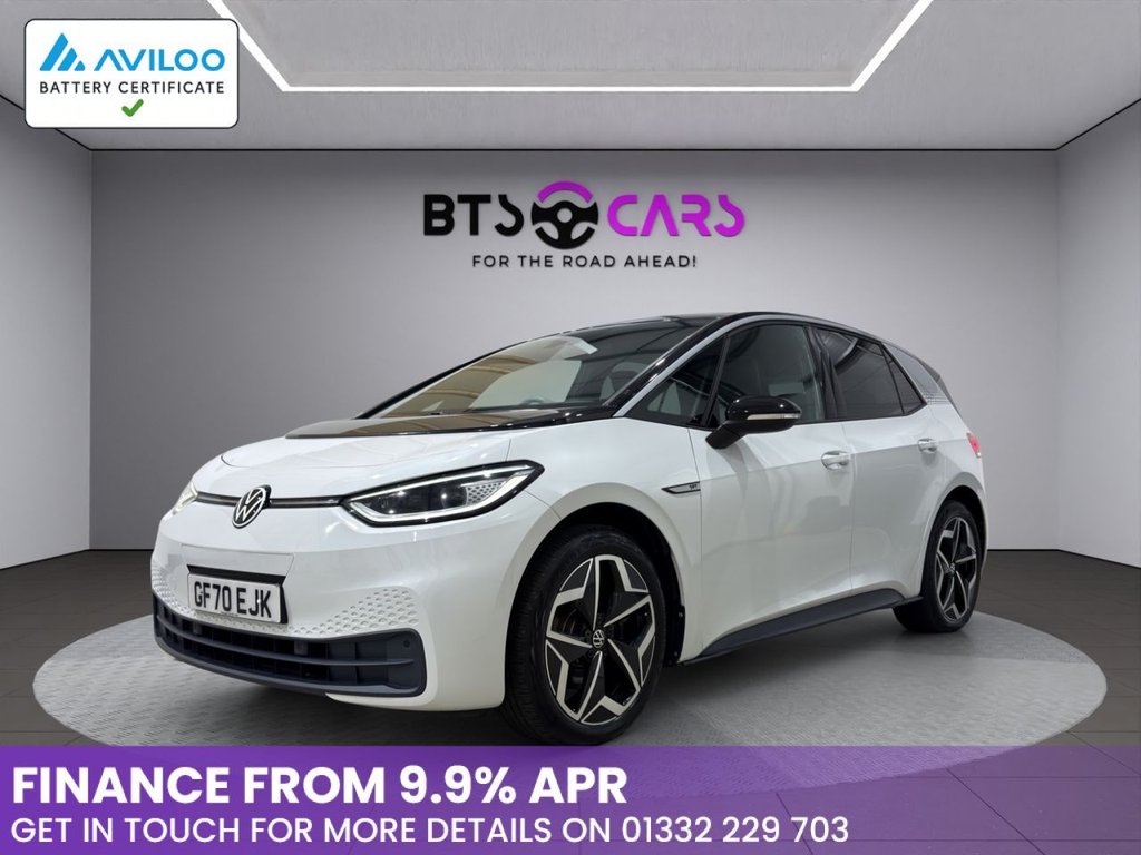 Derby0 Previous Owners, Just arrived! Call for service history, all cars serviced to main dealer standard using genuine parts. To avoid disappointment, please call to book an appointment, as we can get extremely busy and some vehicles are stored in our compound, which will take a few minutes to bring to our office. Book your viewing today: 01332 230766, FINANCE AVAILABLE INSTANT DECISION and LOW APR! WALKAROUND VIDEOS available so you can inspect every detail before visiting. PX + EXTENDED WARRANTY AVAILABLE, No Admin Fee £349 admin fee applies ONLY to 3rd party finance companies. NATIONWIDE DELIVERY: £2 + V.A.T per mile (oneway only). Why Buy from Us? Unlike most dealers, our inhouse mechanics safety check and service EVERY vehicleno exceptions. Service history checks: If needed, we bring the vehicle up to main dealer standards. MOT carried out at independent garages for transparency..Mode 2 3Pin Mains Charging Cable, Glacier White with Black Roof, 10in Infotainment System, 19in Alloy Wheels Andoya, ABS AntiLock Braking System, Adaptive Cruise Control ACC including Front Assist Radar Sensor Controlled Distance Monitoring System City Emergency Braking System Cruise Control and Speed Limiter, Airbag Front Centre, Airbags Curtain Front, Airbags Driver, Airbags Front Side, Airbags Passenger, Armrest Integrated into Front Seats, Black Roof, Body Coloured Bumpers Door Handles and Door Mirrors with Integrated Indicators, Car2X Technology, Carpet Mats Front and Rear, Comfort Package Plus, DAB Digital Radio, Design Package, Digital Dashboard, Driver Alert System, Driver Profile Selection with Personalisation, Electric Windows Front and Rear, Electronic Parking Brake with Auto Hold Function, Exterior 1ST Edition Styling, Exterior ESound, Exterior Silver Decal Style Pack, Free WeConnect Start for First 3 Years, Heated Rear Window, ID Light, Infotainment Package, Interior 1ST Edition Styling, Interior Ambient Lighting 10 Colours, Lane Assist, Mode 3 32AMP 7.2kW Charging Cable for Charging at Public Charge Points, NCAP Pack Forward Collision Warning Extended and Proactive Pedestrian Protection, Natural Voice Control, Parking Sensors Front and Rear, Pedals Pause and Play, Power Assisted Steering Speed Sensitive, Remote Tailgate Unlocking, Security and Service SOS Buttons, Special WeCharge Conditions for ID 3 Customers within First 3 Years, Steering Wheel Leather Trimmed Heated Multifunction, Tyre Mobility Kit, We Connect ID App, Wireless App Connect
