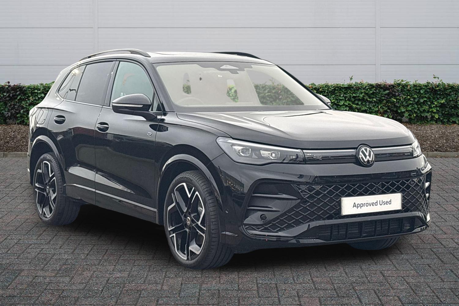 ExDemo, Insurance Group 23, 0 Previous Owners, Franchise Approved, Available from 02/07/2026. Volkswagen Tiguan Diesel Estate 2.0 TDI RLine 5dr DSG in Grenadilla Black. Specification Includes Exterior Features,Heat insulating glass in side and rear windows,Heat insulating windshield,Laminated safety glass windshield,Rain sensor windscreen wipers,Rear wiper,Front shock absorption,Front wheel drive,Body coloured door handles,Chrome moldings on the side windows,Illuminated door handle recesses,Rear side wing doors,3D rear combination light special signal pattern,Ambient lighting with logo projection,Automatic headlight control system,Coming/leaving home lighting function,Dynamic headlight range control with dynamic cornering light,High Beam Assist automatic sensing for switching between dipped and main beam,High level 3rd brake light,Highway light,Illuminated lightline between headlamps,Illuminated logo front and rear,LED headlamps,LED separate signature day time running light,Poor weather light,Rear fog light on one side reversing light on both sides,Safety,Electronic parking brake with auto hold,Front disc brakes,Hill start assist,Rear disc brakes,Adaptive cruise control (ACC),Advanced driver attention and drowsiness monitor,Driving profile selection,Dynamic road sign display,Extended safety system (proactive passenger protection system),Front Assist Autonomous emergency braking with pedestrian and cyclist monitoring,Lane change system Side assist Rear traffic alert and Exit warning system,Multifunction front facing camera,Oncoming vehicle braking when turning including swerve support,Park assist plus with park distance control,Power assisted steering with speed sensitive,Auto dimming interior rear view mirror,Exterior mirrors convex on the left and aspherical on the right,Remote electrically foldable door mirrors puddle lights and reverse activated passenger's door mirror,3 point seat belt for centre rear seats,3 Point seat belts in front with pretensioners,3 point seatbelts in outer rear with ECE label,Driver and front passenger airbag with front passenger airbag deactivation,First aid kit with warning triangle and safety vest,Front and rear curtain airbags,Front centre airbag,Manual child proof rear door locks,Rear side airbags,Two tone horn,Tyre pressure monitoring system,Interior Features,Carpet mats front and rear,Air care climatronic 3 zone air conditioning system with rear air conditioning control panel,12V outlet in center console rear and in luggage compartment,12V socket in centre console,2 USBC ports