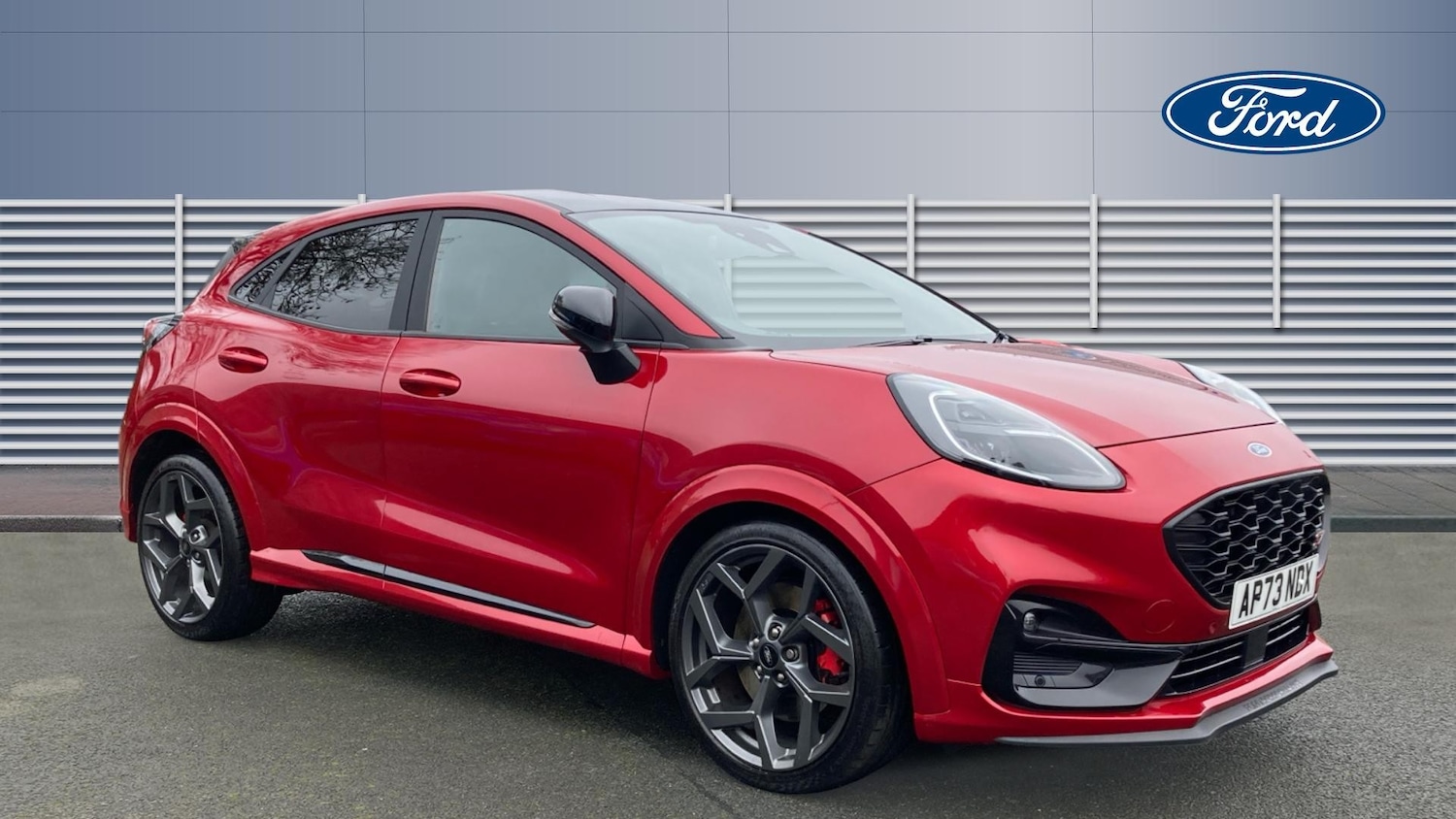 Insurance Group 21, 0, .Front and rear floor mats, Quickclear heated windscreen, Rear wiper, Automatic rain sensing wipers, Privacy glass to side rear windows and tailgate glass, Red brake calipers, Electronic stability control (ESC) and hill start assist, Pre collision Assist system, Pedestrian/cyclist detection & postcollision braking, ST suspension, Front and rear parking sensors, Power assist steering, Speed sign recognition, Lane keeping aid with lane departure warning, Cruise control with Intelligent speed assist, Driver impairment monitor, Ford easy fuel, Selectable drive modes (normal, sport, eco, track), Full digital 12.3" instrument cluster, Emergency call service, Power foldable heated door mirrors with puddle lamps and puma logo protection, Carbon look interior deco spears, Engine sound enhancer, Dual chrome exhaust, ST scuff plates, Rear side wing doors, Unique ST body styling kit including wing mirrors and Ford Performance embossed splitter, Third brake light