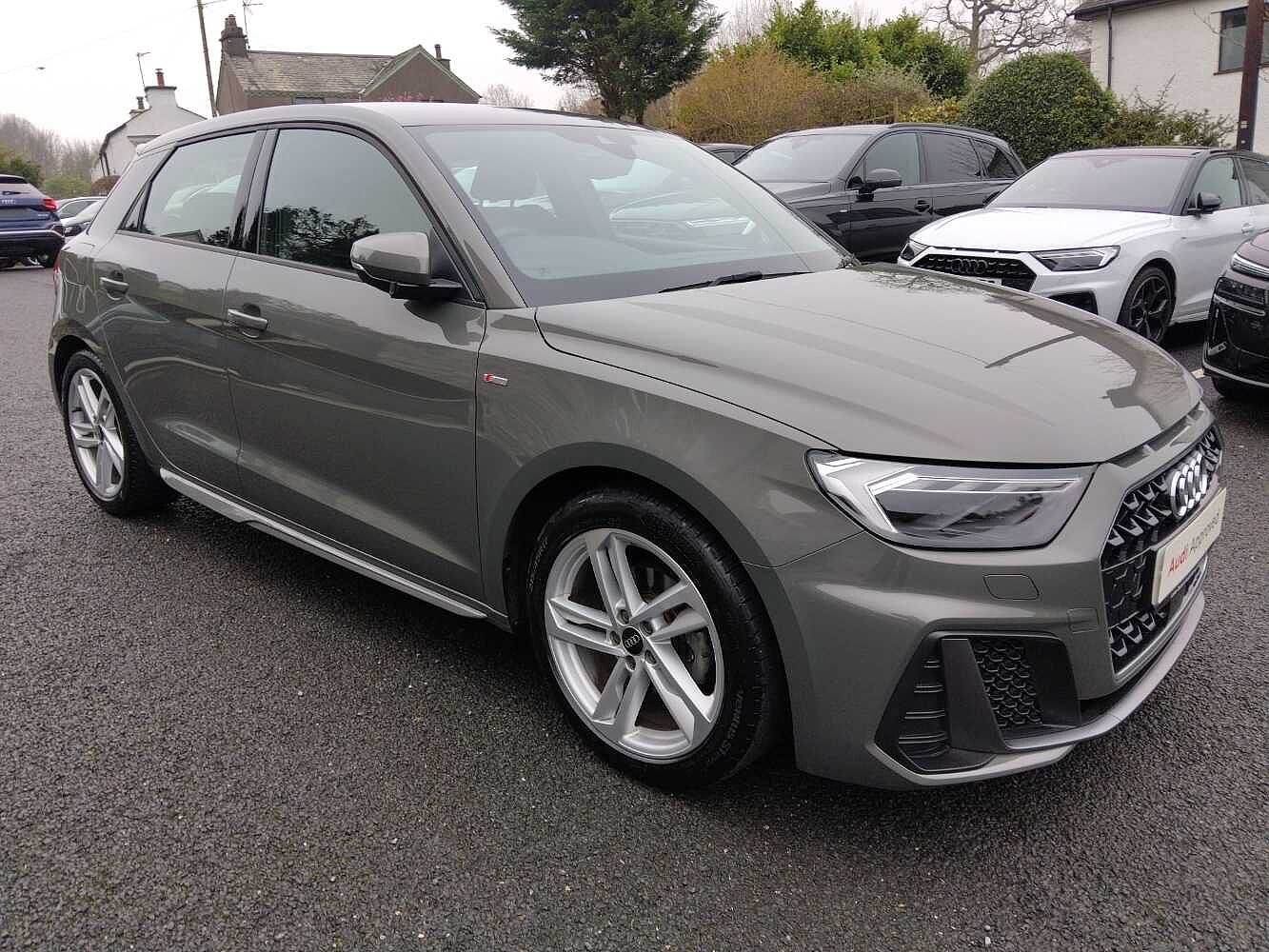 Grange-over-SandsInsurance Group 18, 1 Previous Owner, Aluminium trim for control switches, air vents and digital instrument cluster, Black dashboard, Silver grey inlays polygon structure in diamond paint finish, Structured grey accent areas including air vents, door handle recesses and centre console in quartz paint finish, LED interior lighting pack A1, Luggage compartment pack A1, S line exterior styling pack A1 Sportback, Anti theft alarm, Anti theft wheel bolts and loose wheel warning, Immobiliser, Remote central locking with 2 foldaway keys, 2 x USB type C connection points, 6 passive loudspeakers, DAB Digital radio, MMI radio plus with 10.1" colour MMI display screen and MMI touch, 3x3 point rear seatbelts, Audi presense front with pedestrain and cyclist recognition, Brake assist function, Driver and front passenger airbag with front side and head airbags, Electronic Stability Control including ABS, EBD, ASR and EDL, Front passenger airbag deactivation switch, Hill hold assist, Manual rear child locks, Seatbelt height adjustment for front seats, Seatbelt monitoring, Tyre pressure warning light, Warning triangle and first aid kit, Auto dimming rear view mirror, Body coloured door mirrors, Door sills with aluminium inlays and S Line logo, Electric front and rear windows, Electrically adjustable, heated, folding door mirrors with integrated LED side indicator, Front side air inlets in grained matt black and C frame in anthracite black, Heat insulating glass windscreen and side windows, Heated rear windscreen, High level LED brake light, LED headlights with LED rear lights + dynamic rear indicators + headlight adjustment and high beam, turning light + LED daytime running lights, Privacy glass, Radiator grille and rear diffuser in matt anthracite black, Radiator protective grille frame in matt aluminium silver, Rain and light sensors, Rear fog lights, Rear side wing doors, Rear wiper, S line badges on front wings, Side front spoiler lips in grained matt black, 12V socket in centre console with two cup holders, 3 rear seats with headrests, 3 seat bench in 2nd row, 3 spoke leather multifunction plus steering wheel features S badging and grips in perforated leather with contrast stitching, 40:60 Split folding rear seat or folded fully, Black cloth headlining, Driver and passenger seat with manual height adjust with forward and backwards adjustment, Front and rear black floor mats with contrast stitching in fine silver, Front head restraints, Front passenger seat, Height and reach adjustable steering