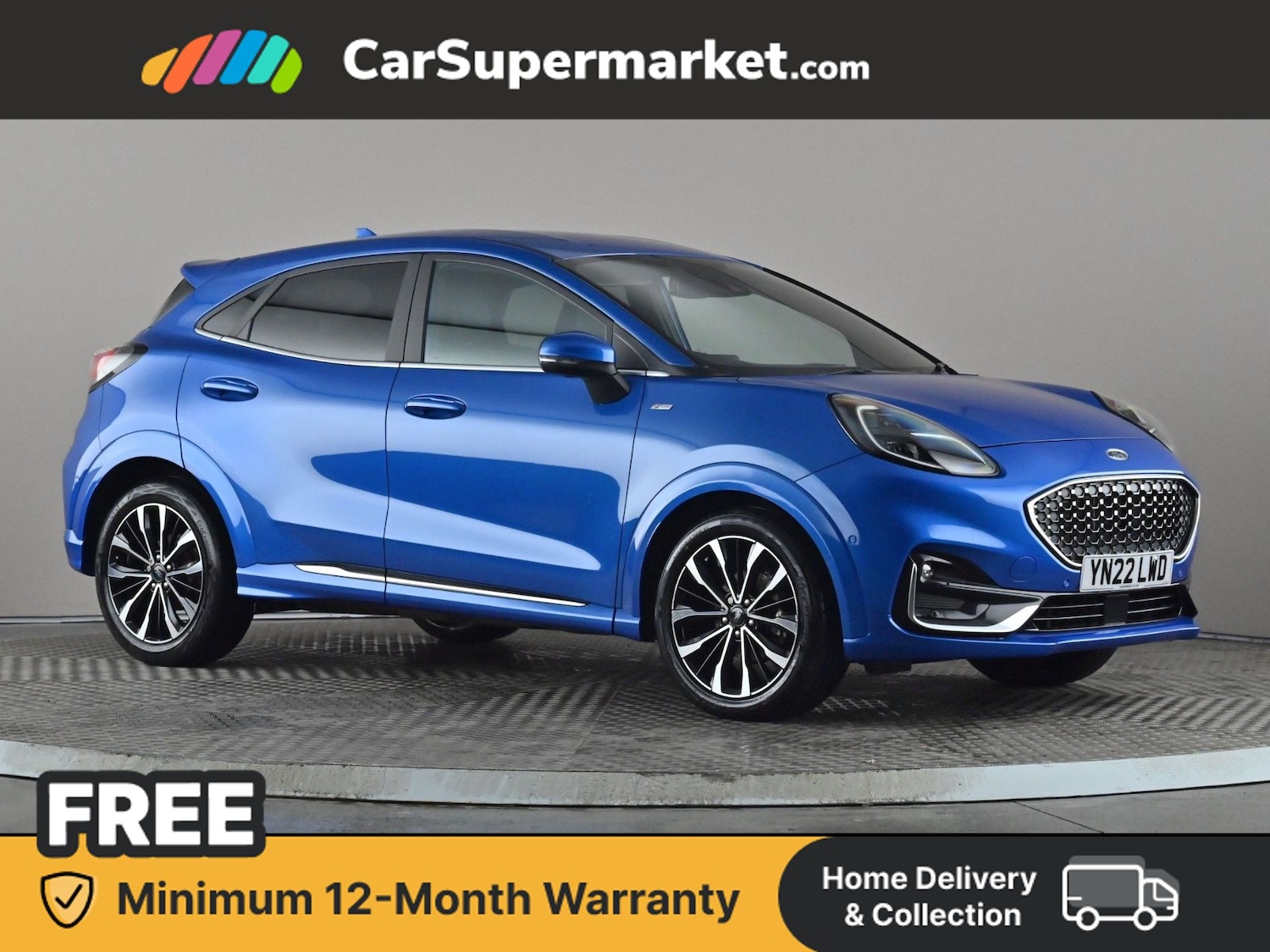 Insurance Group 12, 1 Previous Owner, The Ford Puma 1.0 EcoBoost Hybrid mHEV STLine Vignale in Blue offers a featurepacked drive with Parking Sensors, Lane Departure Warning, Traffic Sign Recognition, Privacy Glass, Quickclear Heated Windscreen, Heated Steering Wheel and Front Seats, Wireless Phone Charging, Sat Nav, and Keyless Entry. Desert Island Blue paint and Premium Sensico Black seats with Metal Grey stitching are included, with optional extras costing £1,225.00.