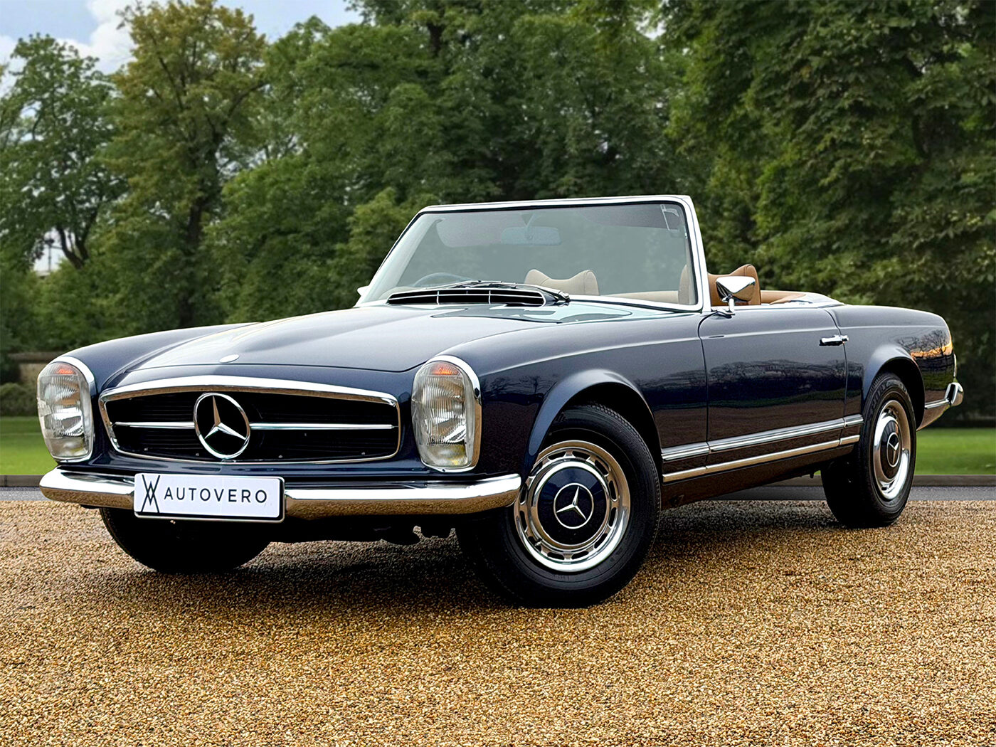 Much HadhamThis 1968 UKdelivered RHD Mercedes W113 280SL Pagoda with a 4speed manual gearbox, is presented in a gorgeous deep Blue metallic paint with matching factory hardtop, Tan MBTex interior, Tan carpets, a Navy softtop. It's truly an eyeful of restrained elegance, and its condition is a testament to the care and attention given to it by its last custodian of 18 years. As a usable example of Mercedes' 1960's sports tourer, the paintwork is in truly splendid condition, and the chromework is beyond reproach. Move to the interior, and everything is just as it should be. The wood veneers are in great condition, the switchgear is a joy, the dashboard features a Becker style stereo unit with Bluetooth, and the seats only carry the slightest of patina. There's also the addition of the rare and soughtafter Kinder Seat in the rear. Being in such lovely condition, it's clear that the car has been treated to an extensive restoration at some point, offering great value for a Pagoda in such enviable condition. On the move, the car delivers a relaxing yet sporting experience perfect for touring and longdistance motoring, with the factory Power Steering being a welcomed optional feature. The engine pulls strongly and the gearbox shifts smoothly. The car is supported by a plethora of paperwork recording a history of extensive servicing and maintenance. Most notably, the engine was replaced in 1984 by the Mercedes Main Dealer, Glen Henderson of Stuttgart. The car will be supplied with two sets of keys, a 12month marketleading extendable warranty, a new noadvisory MOT, and prior to release, will be further subjected to our exhaustive PreDelivery Inspection.