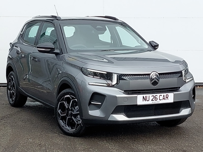 Kilmarnock17" Atacamite diamond cut bitone alloy wheels with locking wheel nuts, Head up Display, Cruise control + speed limiter, Rear parking sensors, Active lane departure warning system, DAB digital radio, 6 loudspeakers, 10.25" capacitive touchscreen, wireless mirror screen includes apple carplay/android auto and bluetooth, Automatic headlights, Manual air conditioning, 1x USBC fast charge in row 2, 1x USBC connection on dashboard, Connected services, Citroen connect box emergency and assistance system, Tinted side windows, Multi function trip computer, Manual gearshift indicator, Exterior temperature display, Electric power steering, eCall emergency call system, Advanced comfort suspension with progressive hydraulic cushions, Turn indicators integrated into rear view mirrors, Standard day night switchable interior rear view mirror, Rear side wing doors, Rear roof spoiler, LED third brake light, LED headlights with electric levelling, LED daytime running lights, Intelligent beam headlights, Heated rear window, Gloss black rear view mirror caps, Gloss black finish B and C pillar, Gloss black exterior door handles, Front intermittent wipers, Front and rear skid plates in grey, Electrically heated, folding and adjustable external rear view mirrors, Electric front power windows with auto up/down for the driver and auto down for passenger, Body colour bumpers, Black wheel arch extensions, Black roof bars, Automatic activation of hazard warning lights, 3D rear light signature, Three rear headrests, Single front passenger seat, Seatbelt unfastened on the move audible and visual alert for front and rear seats, Parcel shelf, Padded fabric armrests in front and rear doors with labels, Matt black gear knob with gloss black insert, Map pockets in back of driver and front passenger seats with additional pocket for smartphone storage, LED front lighting panel with map reading lights, Leather effect steering wheel with gloss black and chrome elements and integrated audio/telephone/cruise control/speed limit controls, ISOFIX mounting on outer rear seats with top tether and labels indicating fixing points, Height/reach adjust steering wheel, Height adjustable front head restraints, Front seats adjustable with forward back slide and adjustable backrest, Fixed boot light, Driver's seat height adjustment, Driver and passenger's sun visor with courtesy mirror, Cloth upholstery, Closed glove box, Chrome effect interior door handles, Central storage with 2 cupholders, Bag support