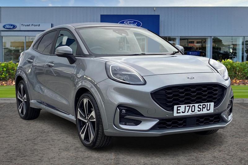 Insurance Group 16, Ford easy fuel, Full digital 12.3 instrument cluster, Lane keeping aid with lane departure warning, Power assist steering, Power liftgate hands free including keyless start + entry, motion sensing key fob, Rear parking sensor, Selectable drive modes(Normal, Eco, Sport, Slippery and Trail), Wireless charging pad, Automatic headlights with rain sensing wipers and auto high beam, Body coloured door mirrors, Fixed LED headlamps, Front fog lights with cornering lights and LED rear lamps, Power foldable heated door mirrors with puddle lamps, Privacy glass to side rear windows and tailgate glass, Quickclear heated windscreen, STLine body kit with large rear spoiler wth sports suspension, Alloy sports pedals, Casual partial leather upholstery with salerno bolster, Centre console with armrest and stowage, Driver and passenger seat lumbar and height adjust, EATC Electronic Auto Temperature control, Ford megabox extended bootspace, Front and rear floor mats, Front and rear head restraints, STLine flat bottomed sensico leather steering wheel with leather handbrake and aluminium gear knob, 3 rear seatbelts, Electronic stability control (ESC) and hill start assist, Precollision assist with autonomous emergency braking, pedestrian/cyclist detection & postcollision braking, Tyre pressure monitoring system (TPMS)