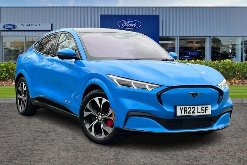 Insurance Group 40, 10.2 full digital cluster and 15.5 central touch screen, 360 degree view camera, Advanced active park assist, Applink remote control system, BLIS (Blind Spot Information System) with cross traffic alert, Distance alert system, Electric power steering, Ford pass connect embedded modem, Front and rear parking sensors, Hands free tailgate, Intelligent adaptive cruise control with stop and go + lane centering, Lane departure warning with lane keeping aid, Next generation SYNC with connected navigation+DAB and natural voice search, Selectable drive modes active, whisper and untamed, Trip computer, Wireless device charging pad, Adaptive LED Mustang signature headllamps, Blade front grille design, Body colour bumpers, Body colour power folding door mirrors with Mustang logo projection puddle lamps, Exclusive paint, Fixed full panoramic roof, LED signature tail lights, Privacy glass, Quickclear heated windscreen, Side cladding and wheel arches in body colour, 8 way power driver and passenger seats with lumbar fore/aft/up/down/recline, Dual electronic automatic temperature control, Front headrests, Front trunk, Heated driver and front passenger seats, Heated steering wheel, One pedal drive, Perforated full sensico artificial leather upholstery, Rear head restraints, 3 point rear seatbelts, ABS, ESP, Evasive steering assist, Pre collision assist with Forward Collision Warning (FCW), Dynamic Brake Support (DBS), Autonomous Emergency Braking (AEB), Red brake callipers