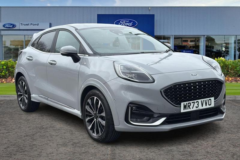 Insurance Group 15, Driver impairment monitor, Emergency call service, Ford easy fuel, Front and rear parking sensors, Full digital 12.3 instrument cluster, Lane keeping aid with lane departure warning, Power assist steering, Selectable drive modes(Normal, Eco, Sport, Slippery and Trail), Speed sign recognition, Automatic headlights with auto high beam, Automatic rain sensing wipers, Bodyside chrome styling, Fixed LED signature headlamps, Front fog lamps, Gloss black with chrome elements on front and rear bumpers, High chrome waistline, LED daytime running lights, LED rear lamps, Power foldable heated door mirrors with puddle lamps and puma logo protection, Privacy glass to side rear windows and tailgate glass, Quickclear heated windscreen, Rear side wing doors, Rear wiper, Third brake light, Vignale body styling kit with unique grille, 3 seat bench in 2nd row, Centre console with armrest and stowage, Ford megabox extended bootspace, Front and rear floor mats, Front and rear head restraints, Manual 4 way driver seat adjust with lumbar adjustment and massage function, Manual 4 way passenger seat adjust with lumbar adjustment and massage function, Premium sensico leather upholstery with metal grey stitching, Premium sensico perforated flat bottomed steering with metal grey stitching, Premium sensico wrapped instrument cluster, Single front passenger seat, Wireless charging pad with electronic air temperature control (EATC), 3 rear seatbelts, Child safety lock, Electronic stability control (ESC)